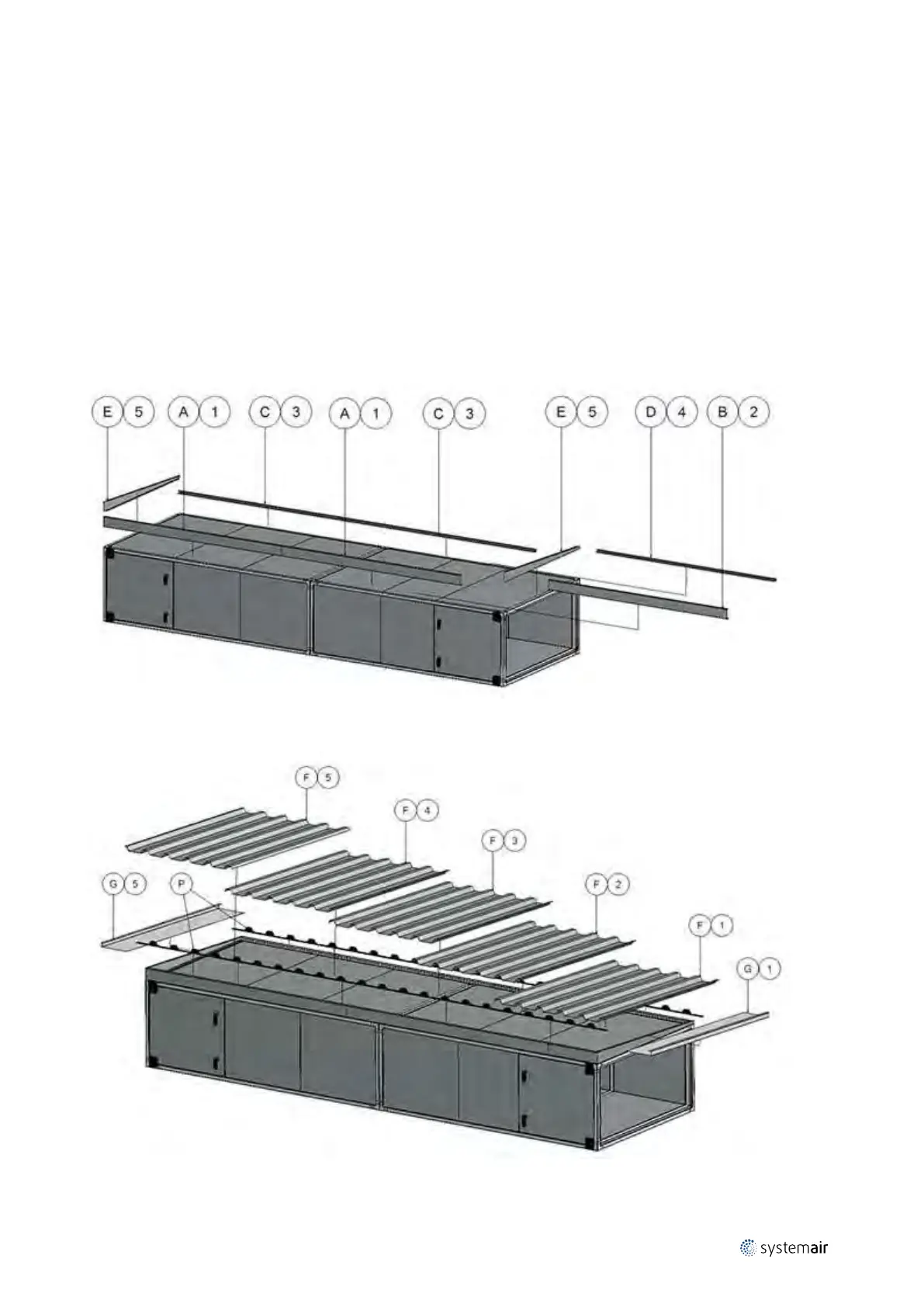 • Mount rails A1, B2, C3, D4, E5 on the unit for support of trapezoidal roof plates (mount also rails Y and Z on units of