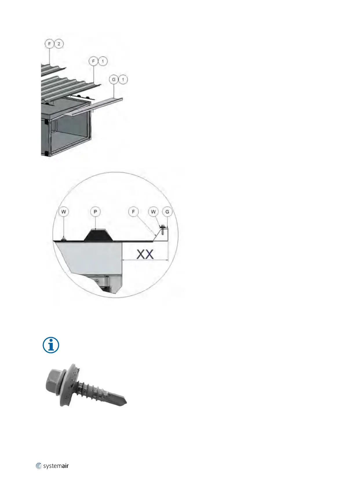 roof overhang profiles – G on a trapezoidal roof plate. Use the self drilling, painted screws with sealing washers - W -