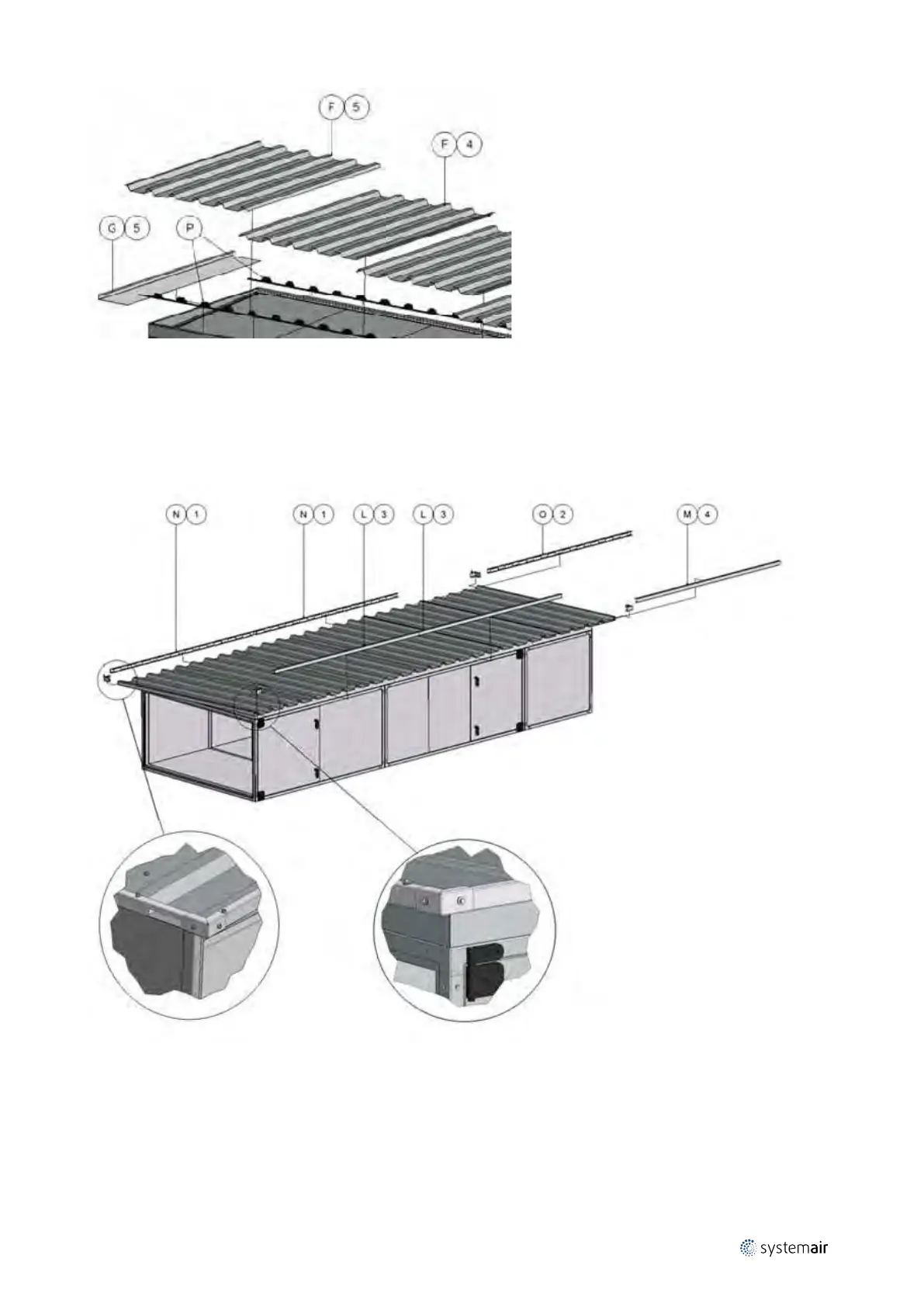 the previous profile N. Mount the profiles L and M along the long and higher front side of the roof. Mount the 4
