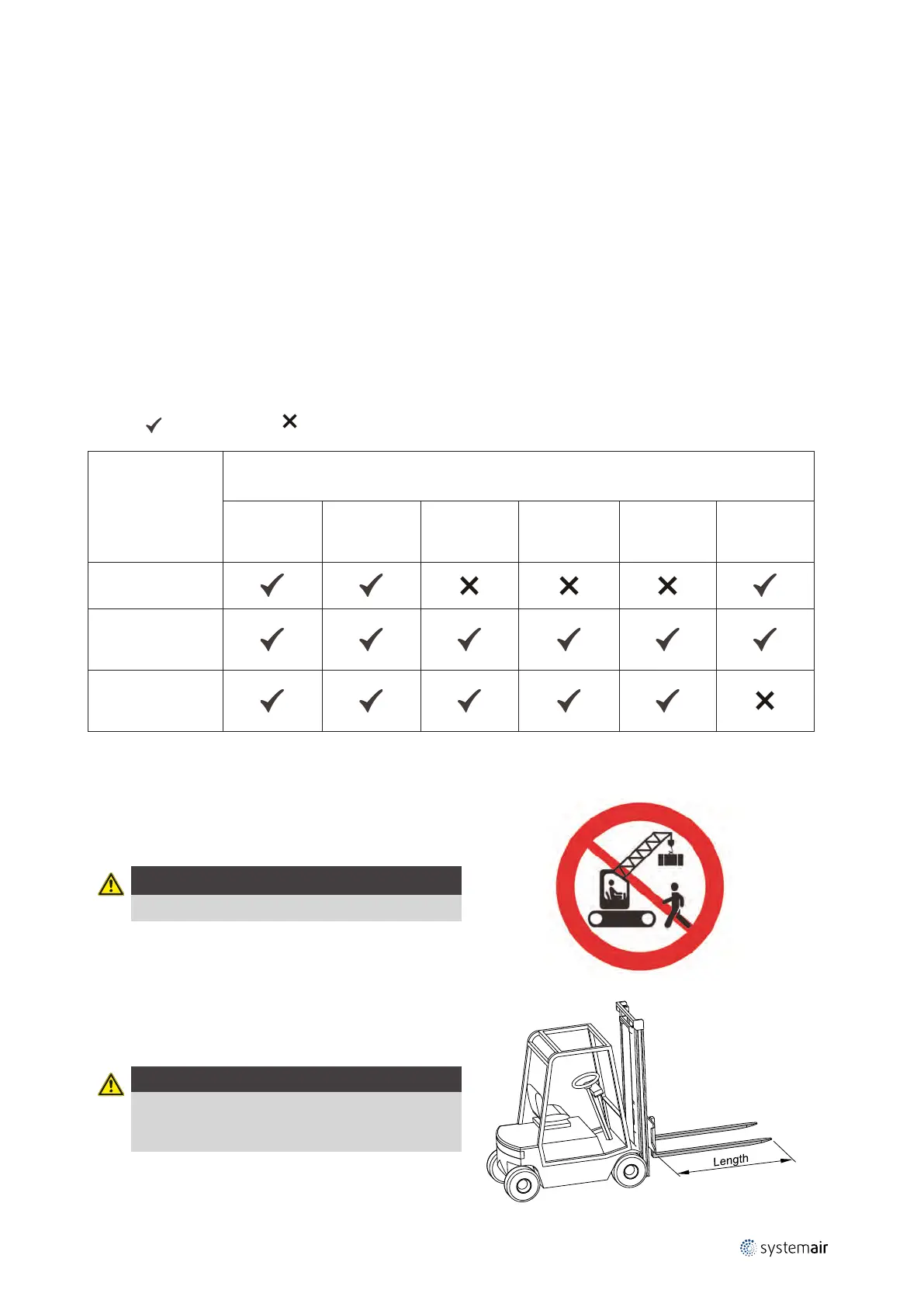 port on the site is possible by forklift trucks, manual forklifts or crane. Systemair does not provide lifting equipment.