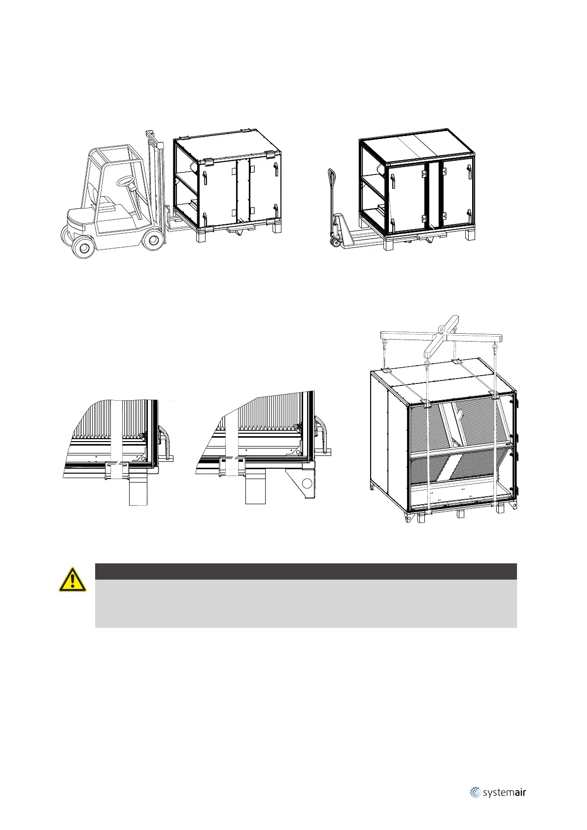 Lifting straps must be directed through the plastic corners. To avoid slipping, straps must be obtruded in notches of the