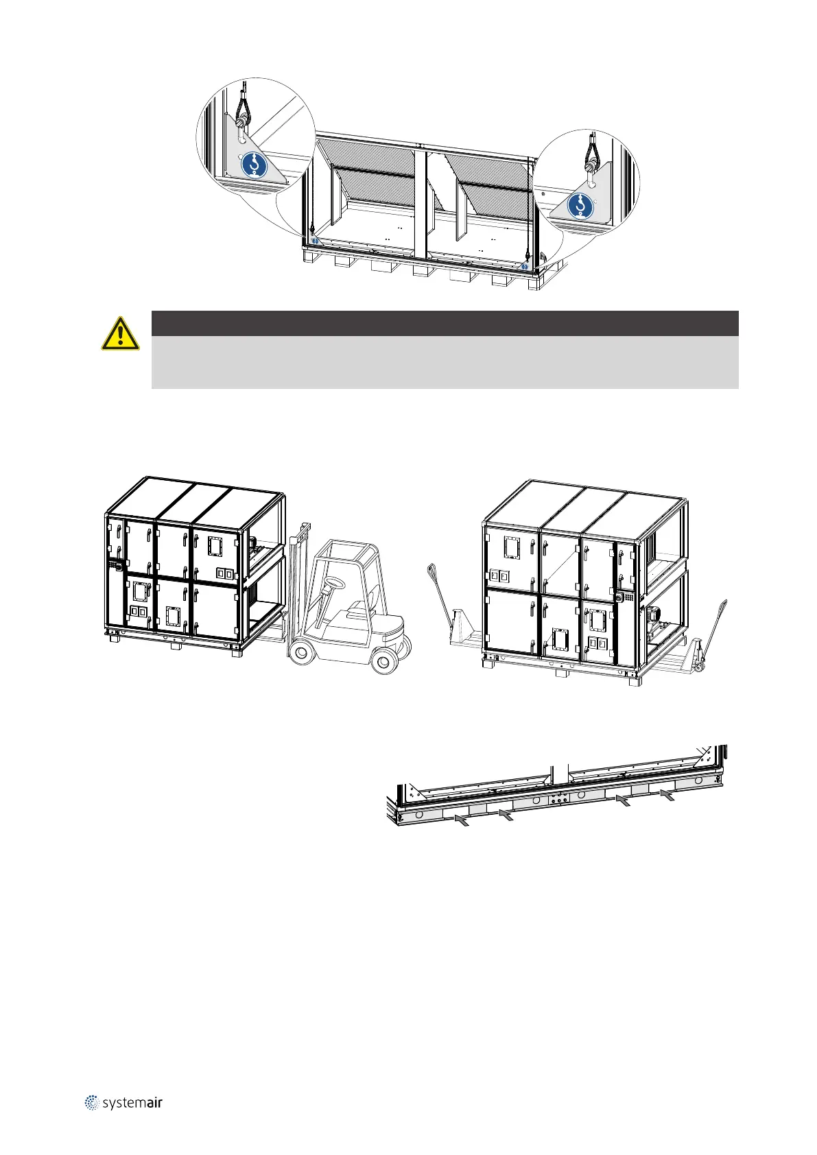 Unit or section placed on a base frame could be lifted and transported by a forklift truck or manual forklift.