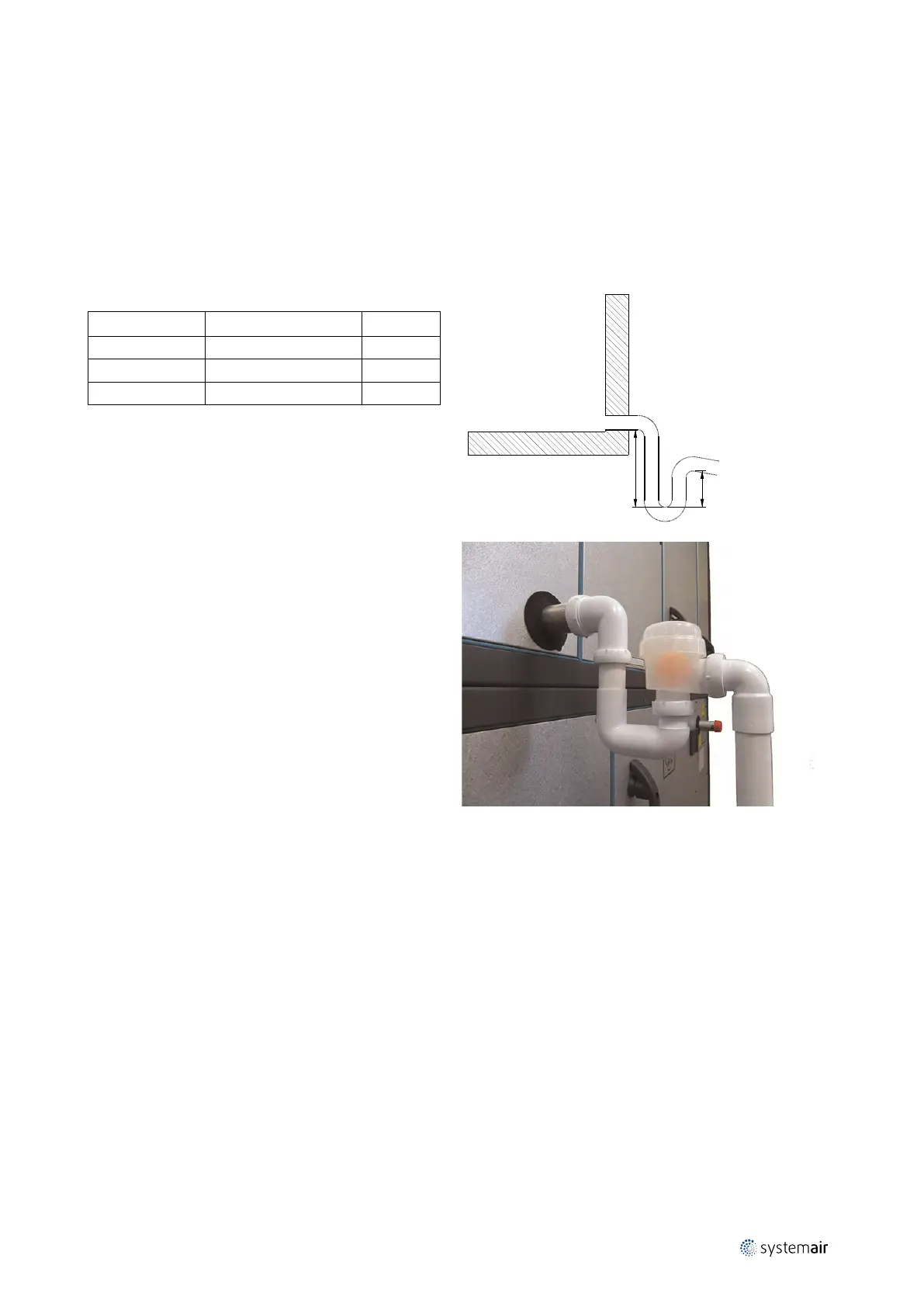 ensure that condensate water flows out of the unit. The closing level of the water trap must be estimated correctly to