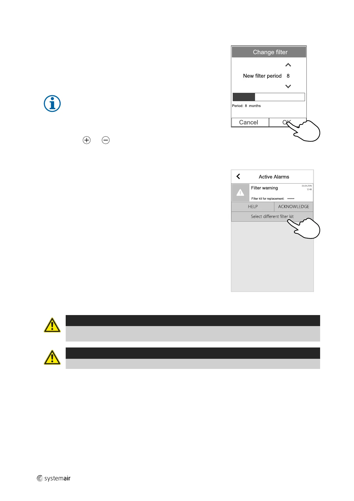 and select filter alarm. Select CHANGE FILTER, in the pop up menu define a
