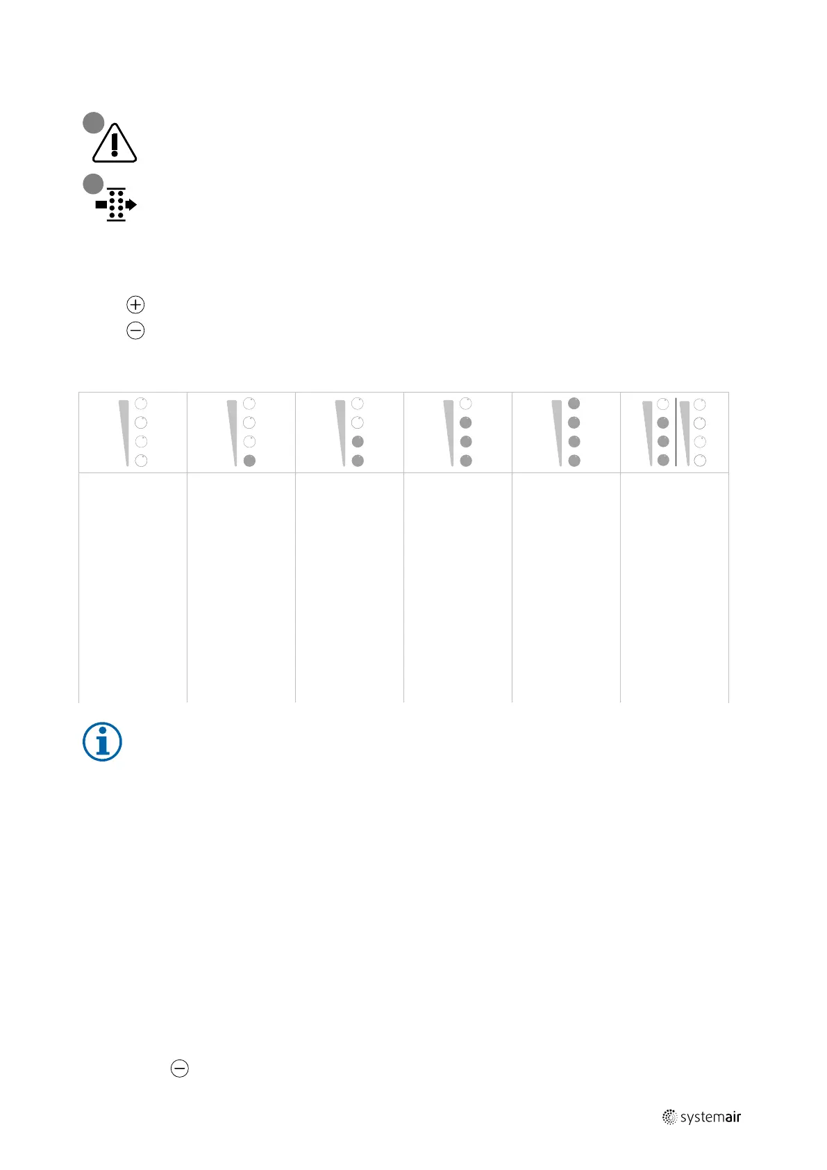 Fan speed – 25% Fan speed – 45% Fan speed – 70% Sets speed of