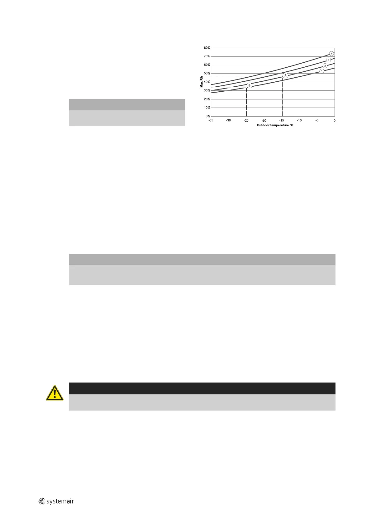 Example B: If the unit is installed in room where temperature is 20°C, outside temperature is –25°C, then dew will start