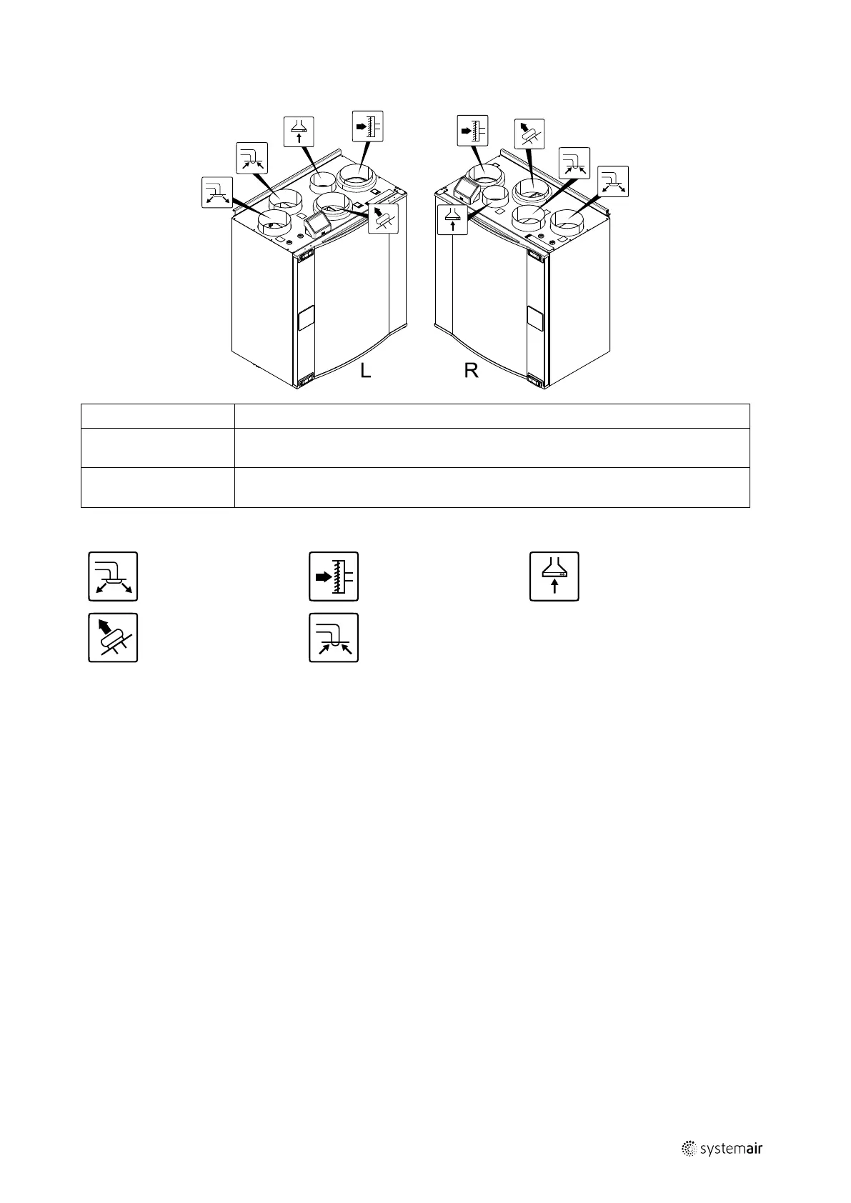 Right hand model (Supply air connection is situated on the right hand side of the unit