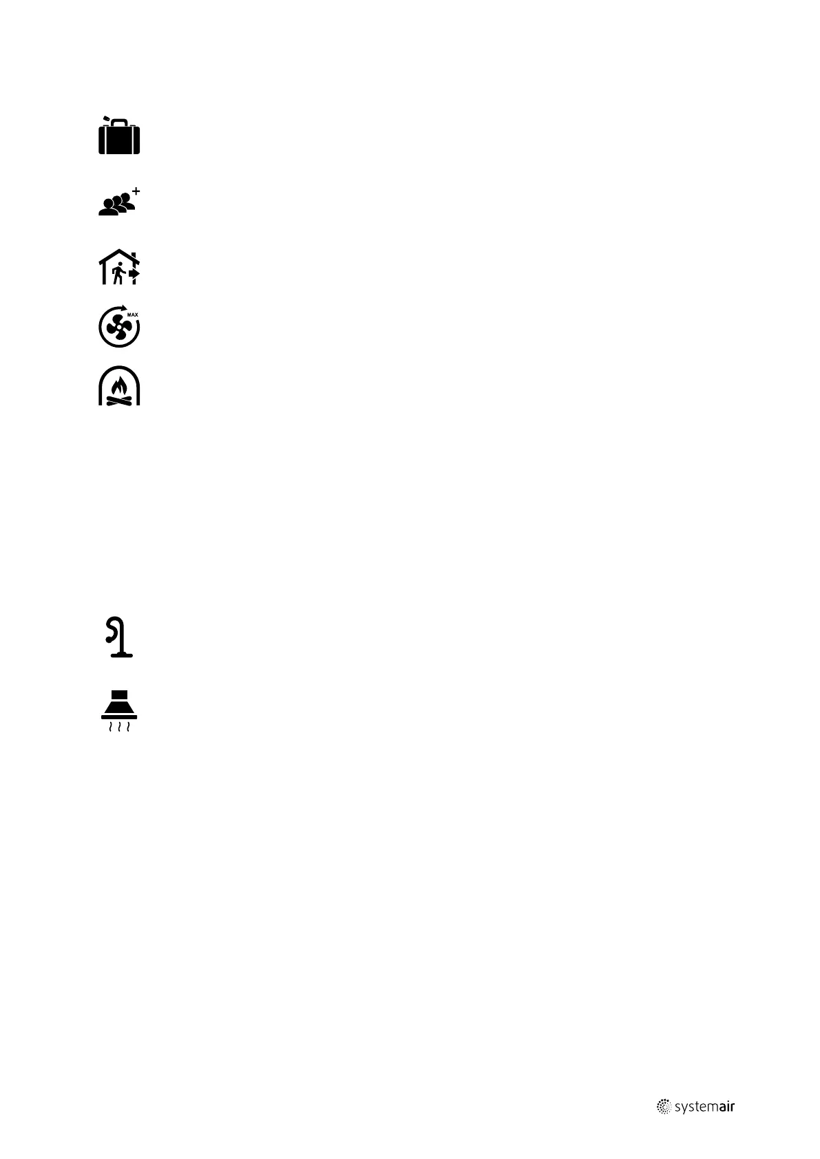 hard-wired digital inputs (DI) for: AWAY, CENTRAL VACUUM CLEANER, COOKER HOOD, CROWDED, HOLIDAY or REFRESH.