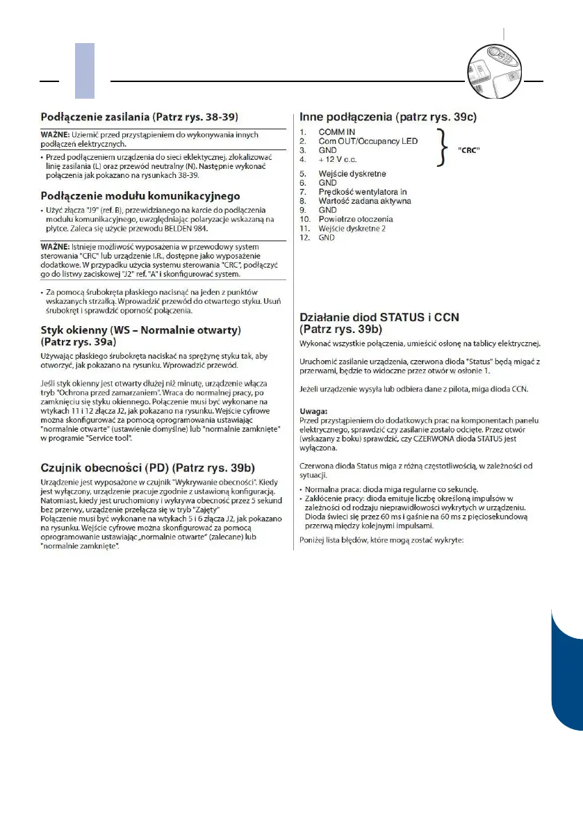 wentylacyjnymi. Ręczne odblokowanie termostatu musi być