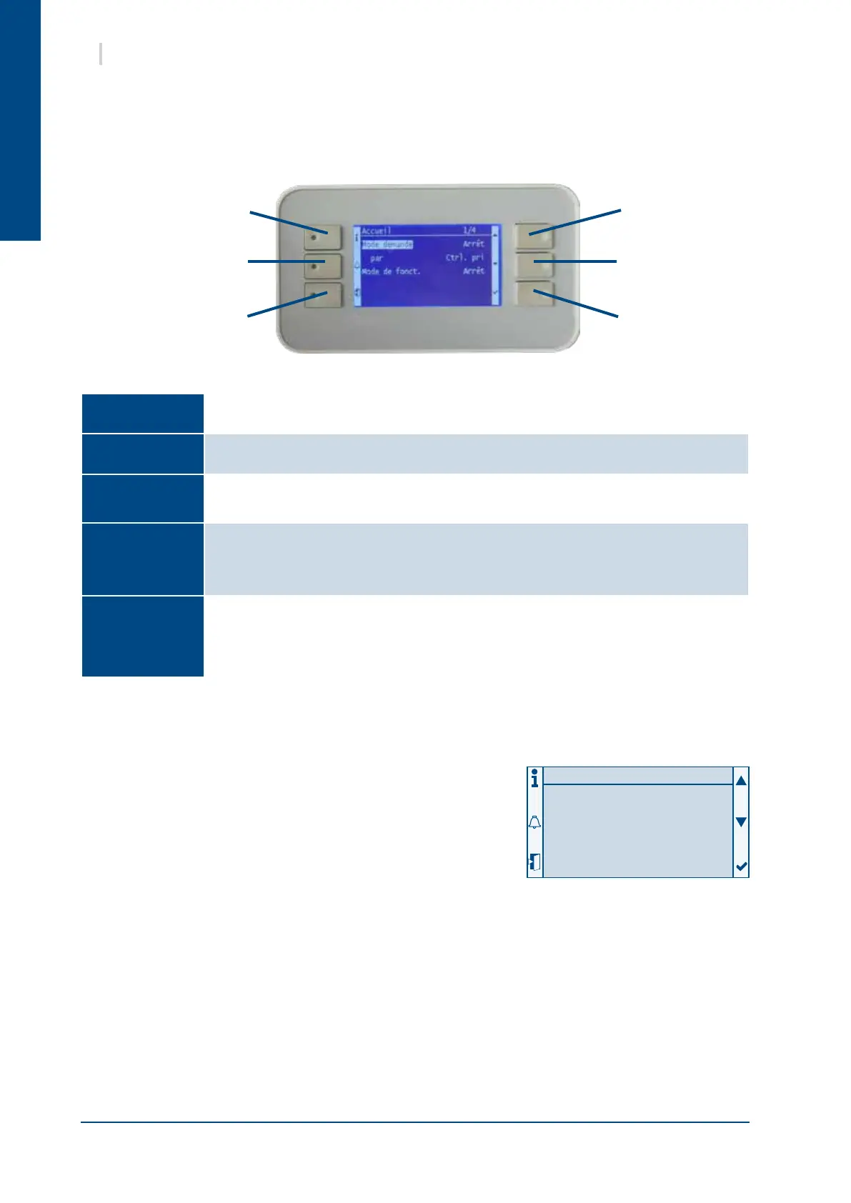 When pressing the alarm button (the red LED flashes if an alarm is active), the alarm management menu is