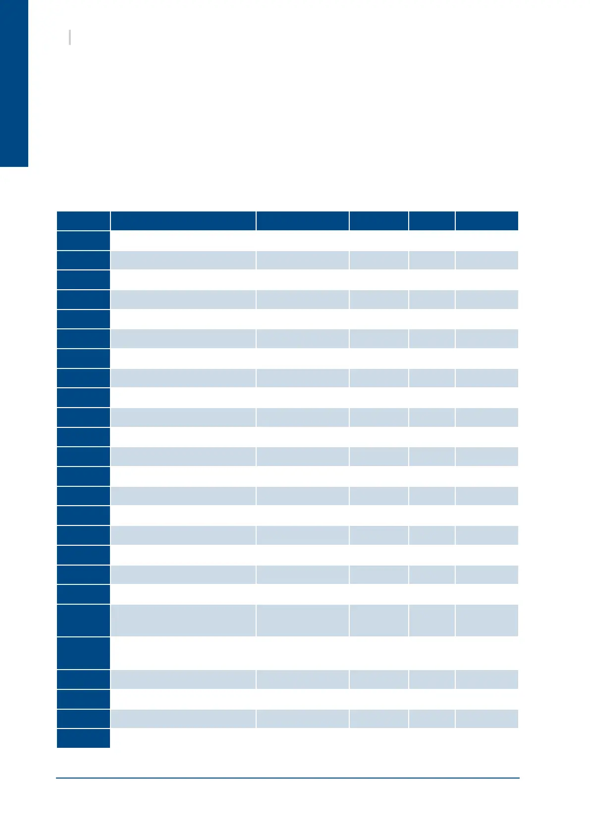 Code Alarm description Action Reset Delay Notes