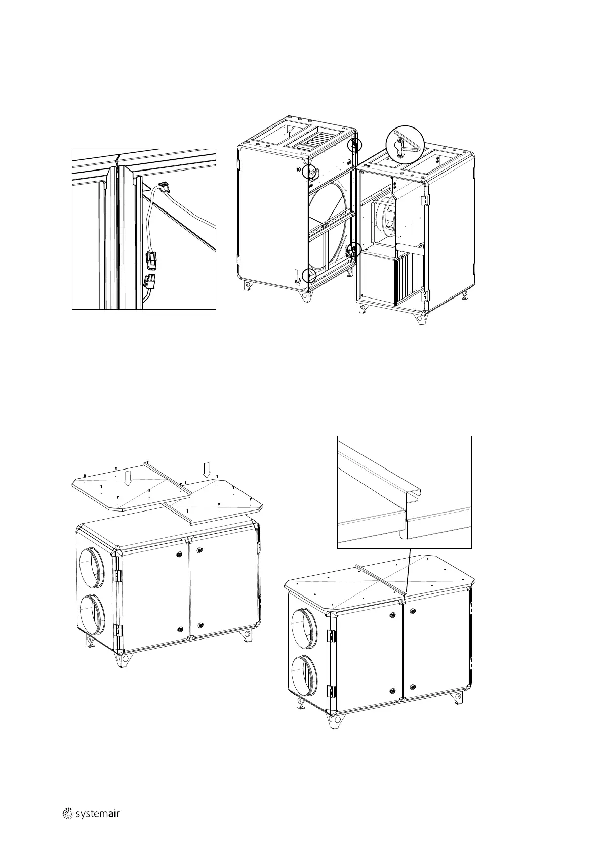 • Place first the right roof part on top of the air handling unit and then the left roof part.