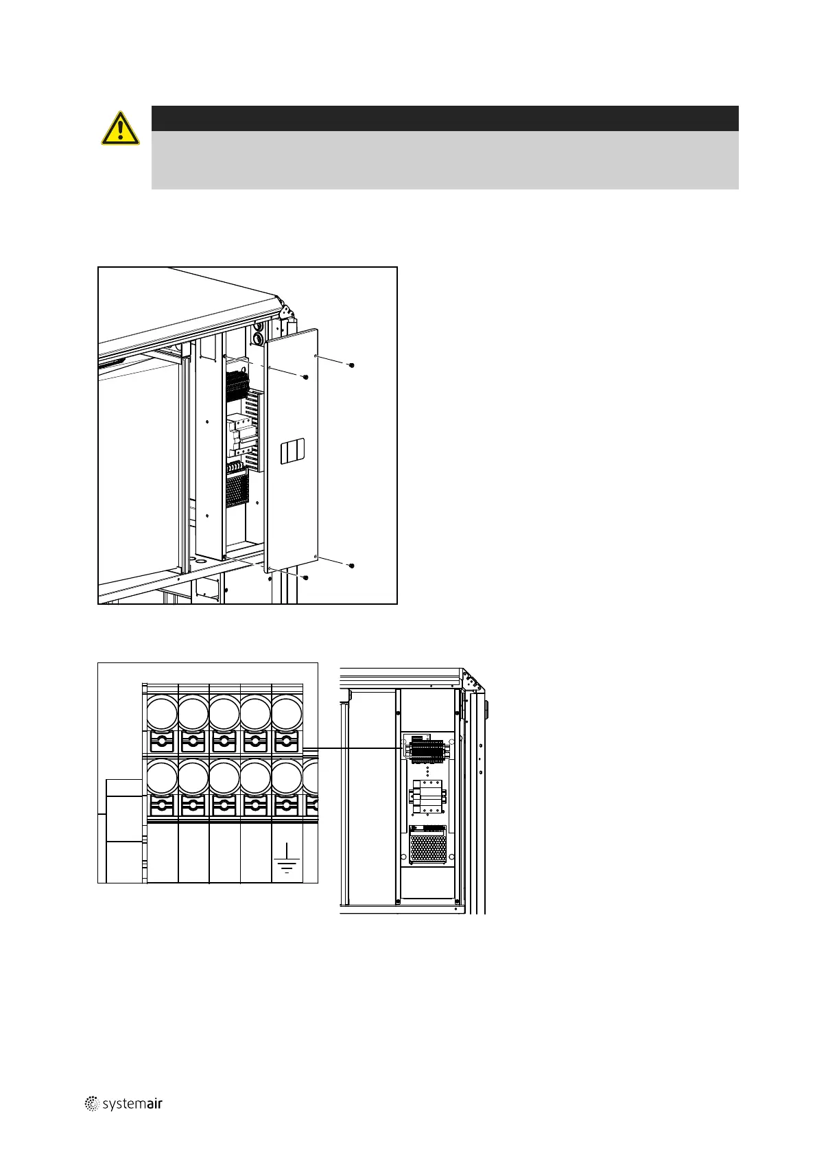 Remove the hatch by unscrewing four screws to the internal electrical cabinet.