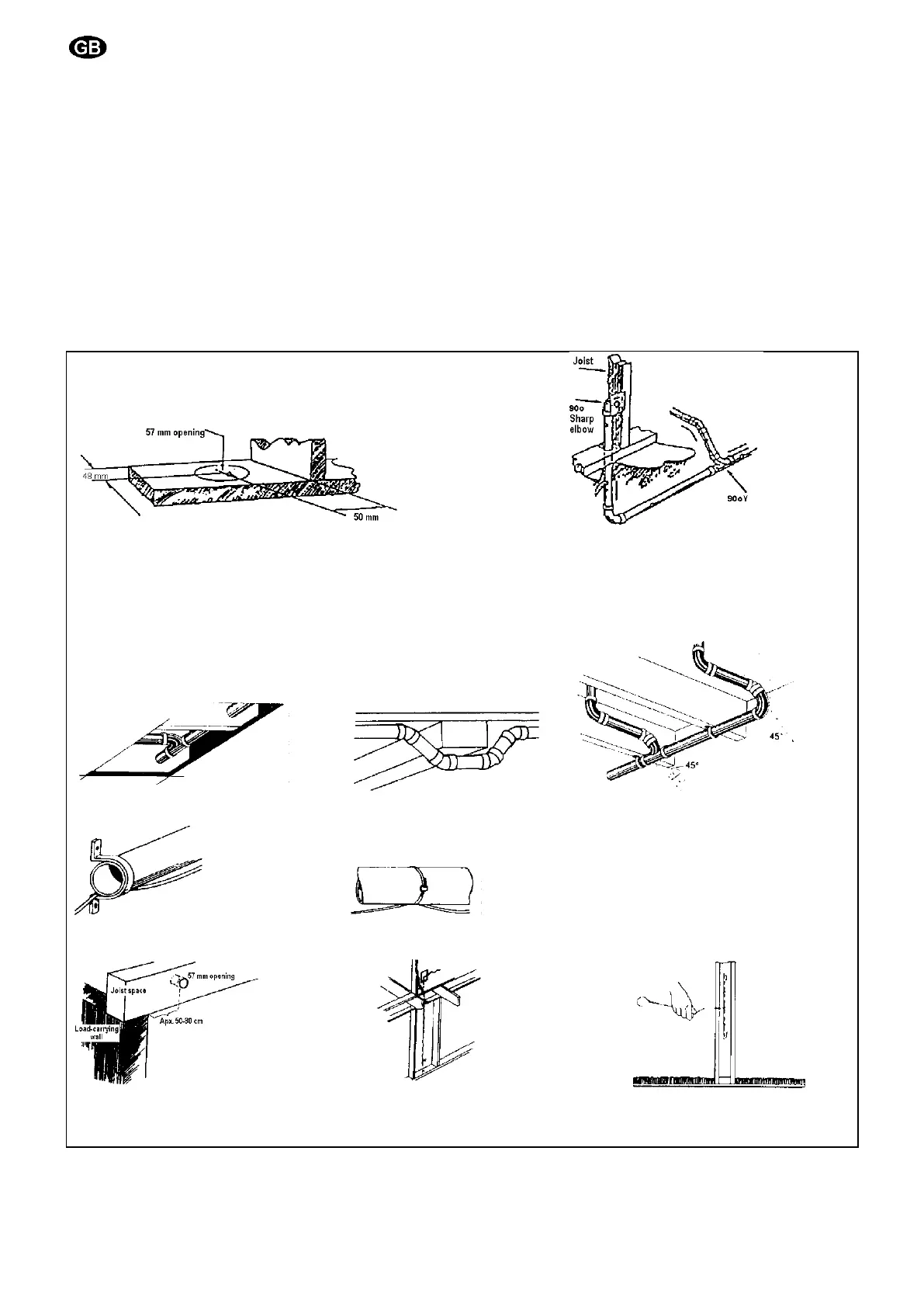hole through the ground beam. Centre of the hole should Scrape off all burrs. Glue pipe runs. Connect pipe to