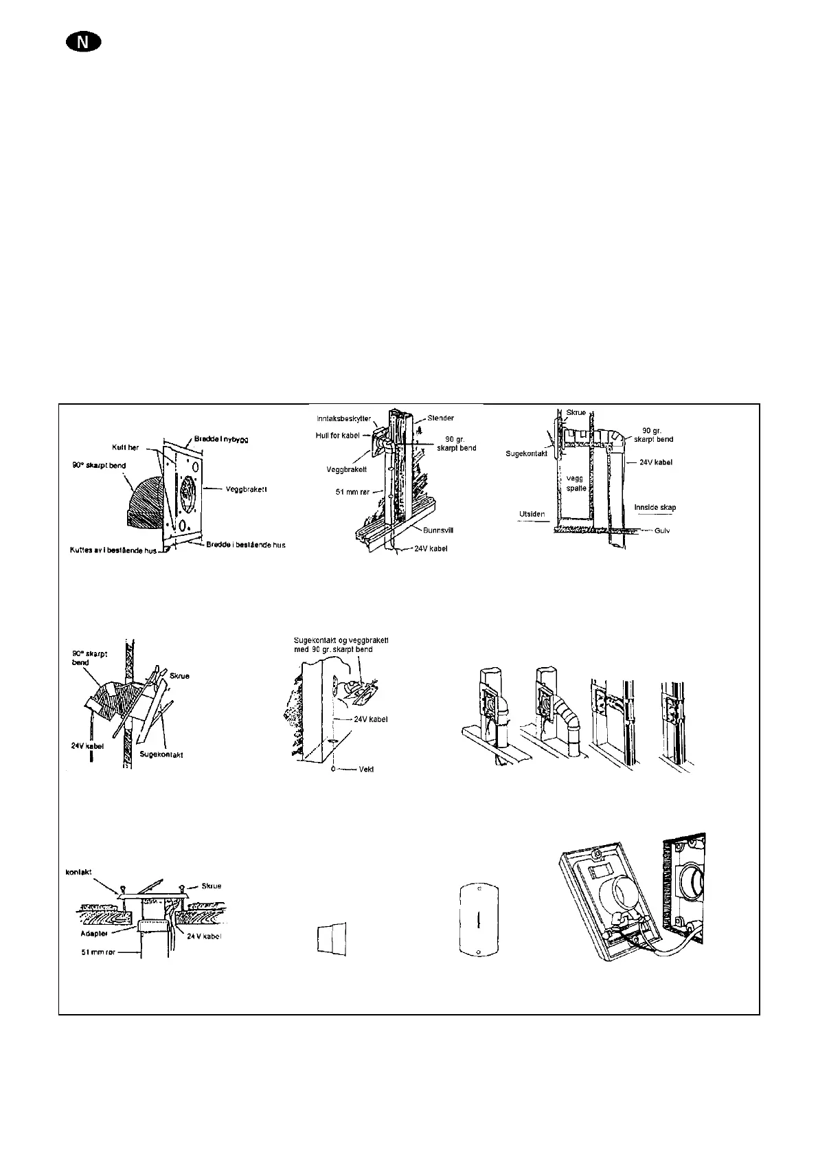 Fig. 7.4. Montering av sugekontakt i vegg i eksisterende bolig. Sett inn den Fig. 7.5.- 7.8. Eksempel på rørtilknytning til