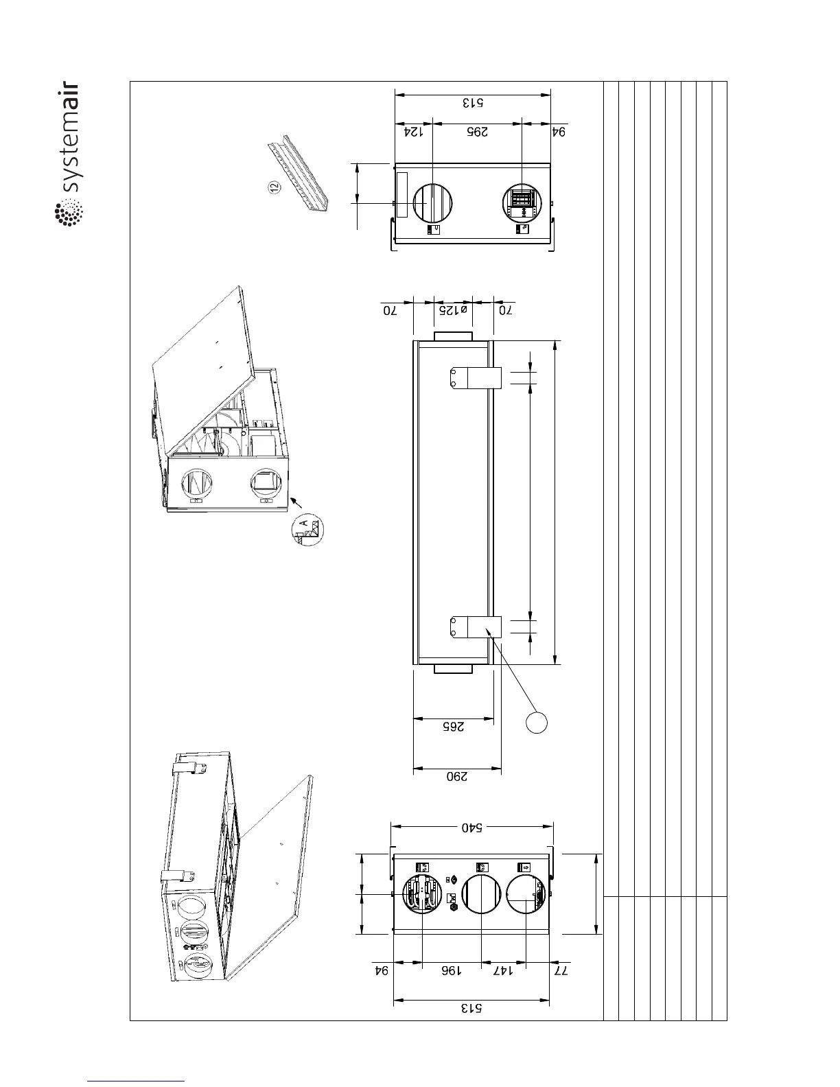 SystemAir VR 250 ECH/B - Dimensjoner Og Vekt