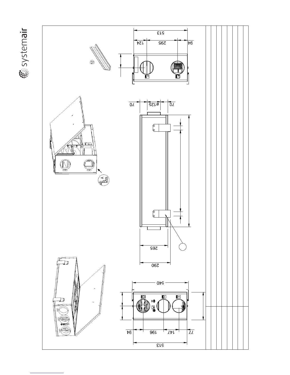 A Connection Supply air, Ø125mm