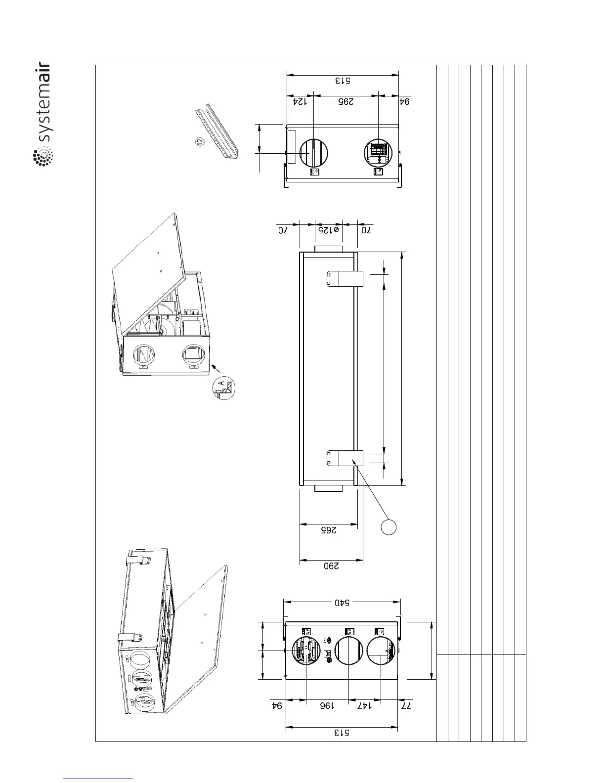 SystemAir VR 250 ECH/B - Dimensionen und Gewicht