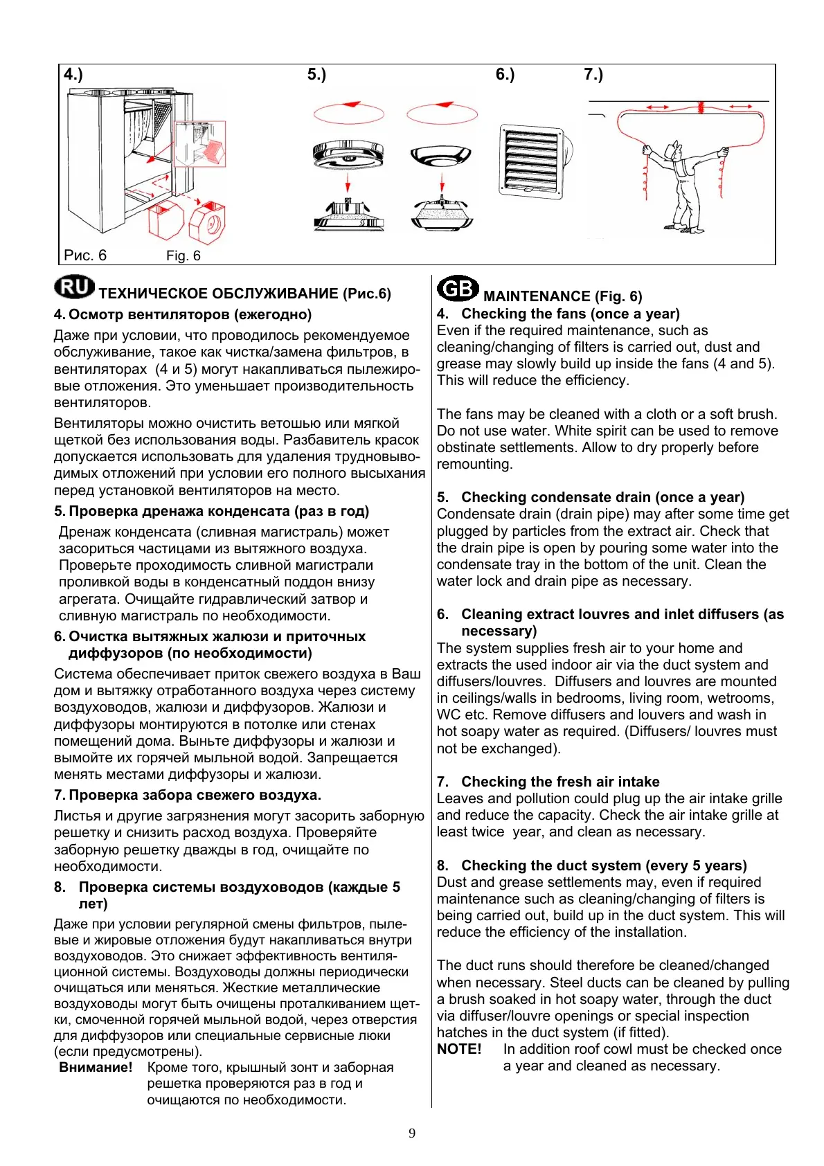 вентиляторах (4 и 5) могут накапливаться пылежиро-