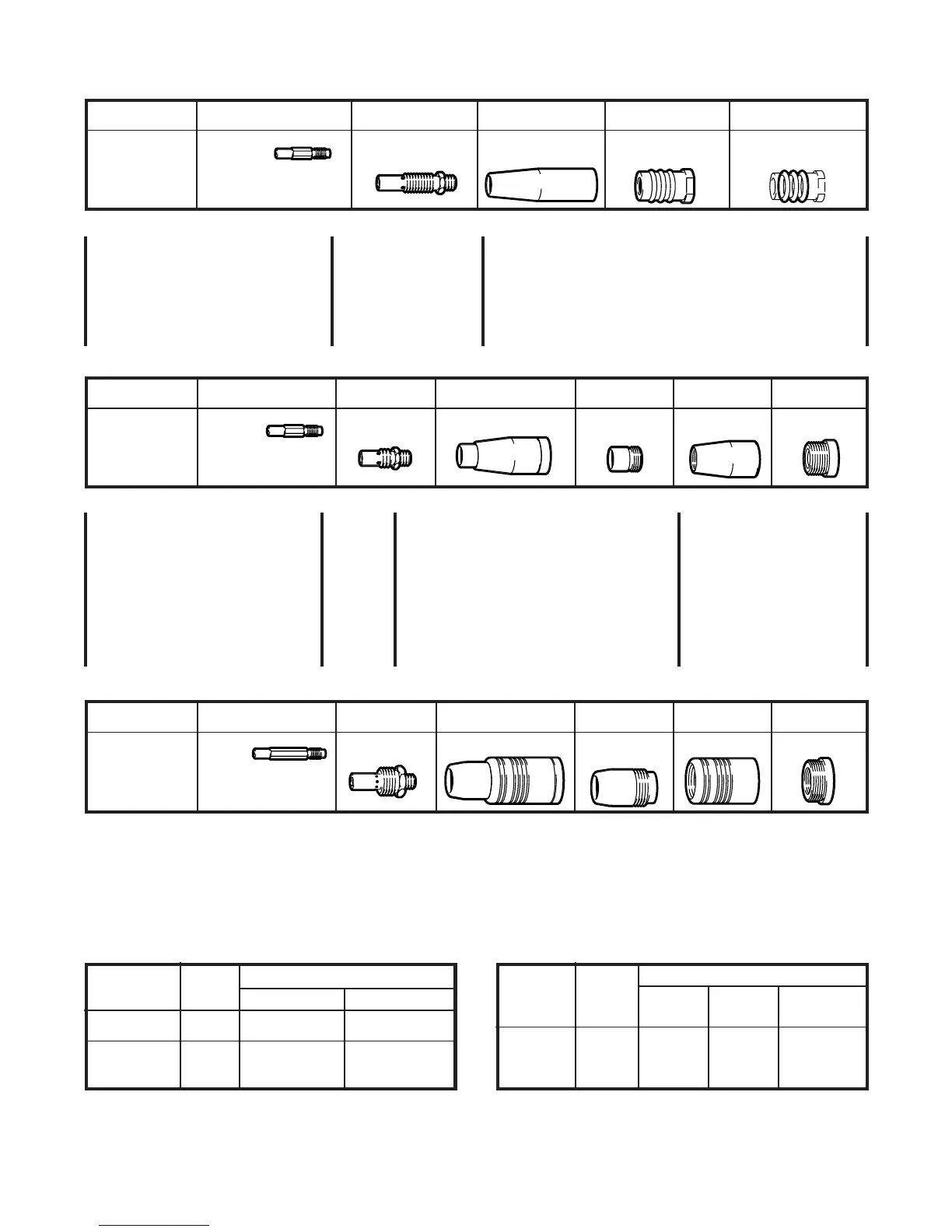 WIRE SIZE CONTACT TIP GAS DIFFUSER NOZZLE INSULATOR INSULATOR O-RING