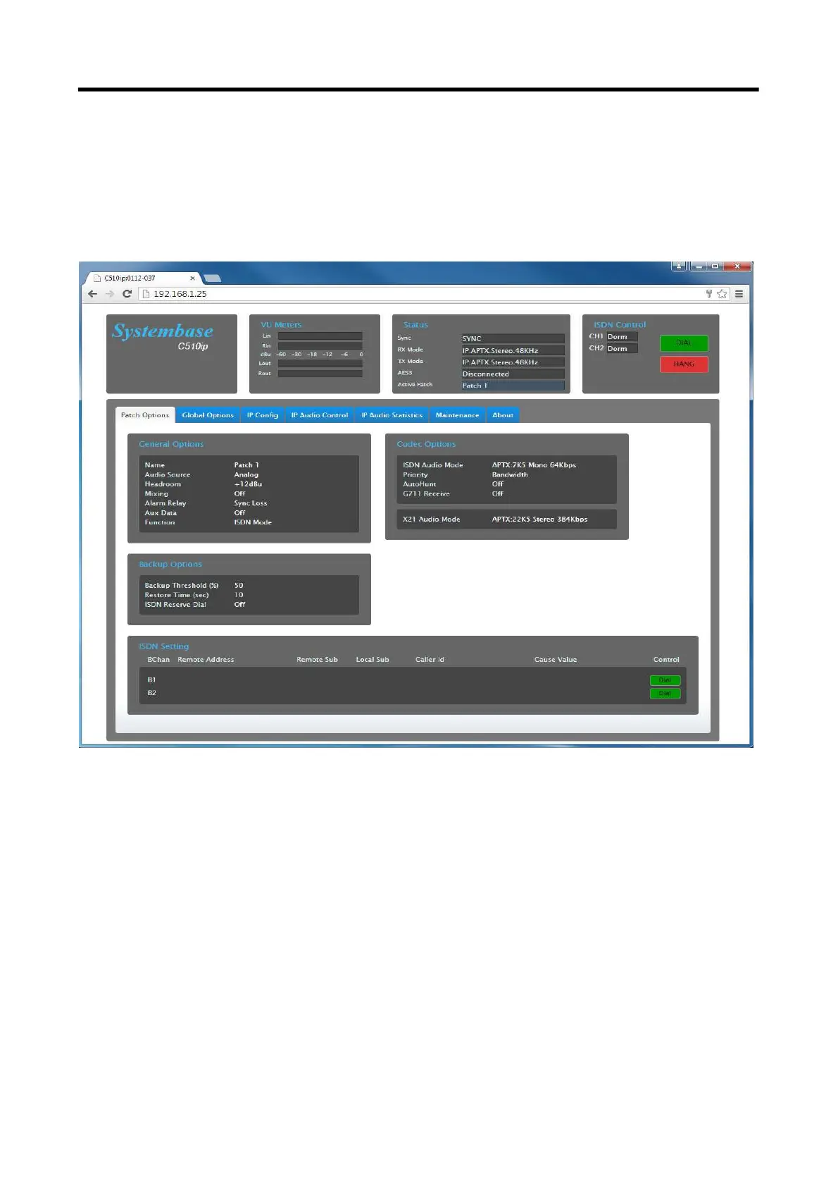 The screen shots below shows the layout of the Webserver for the C510ip-s Codec.