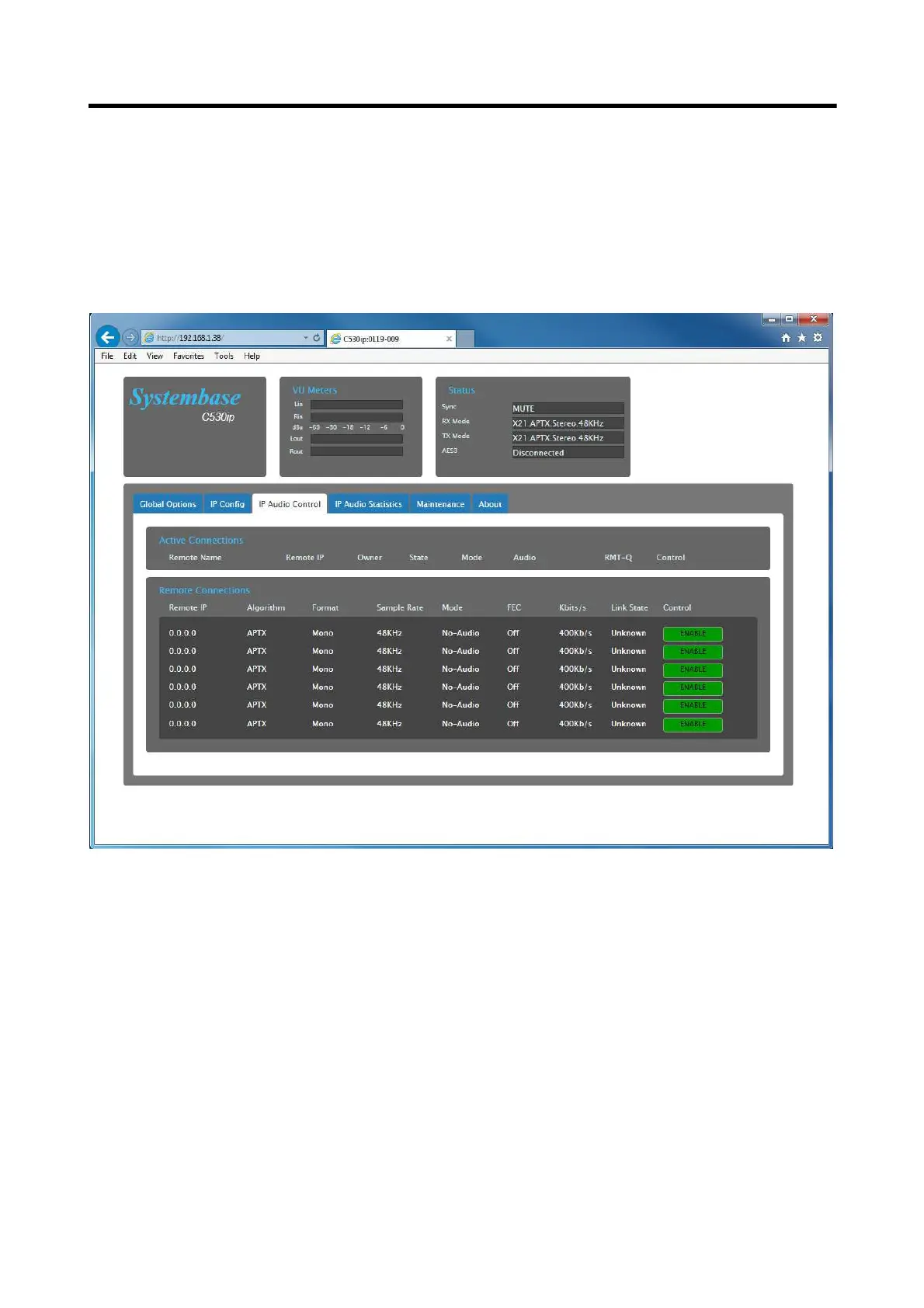 The screen shots below shows the layout of the Webserver for the C530ip Codec.