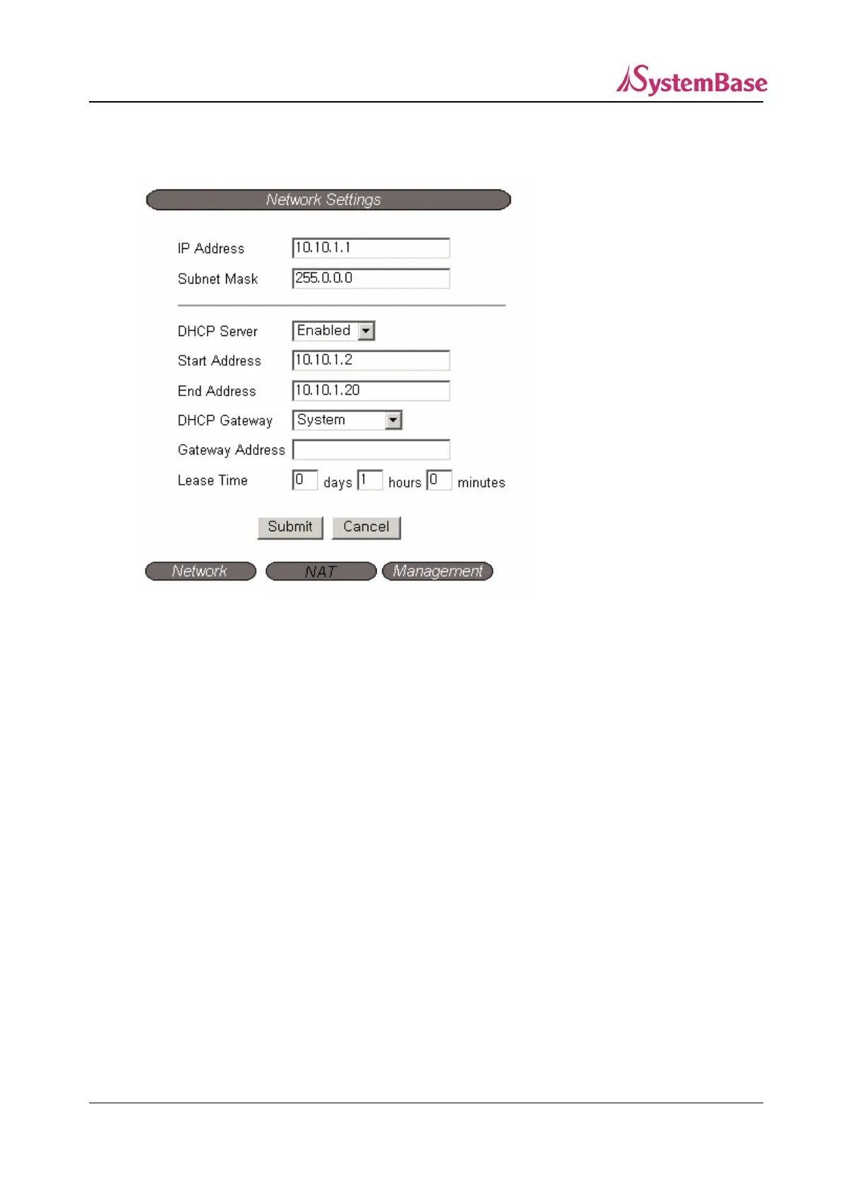 DHCP Server (Default: Enabled)