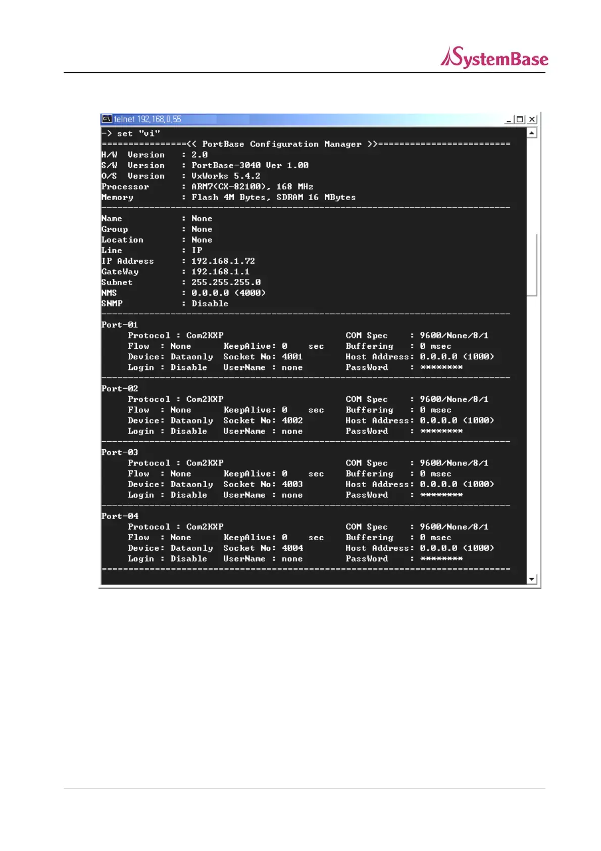 SystemBase Portbase-3010 - Network Environment Configuration
