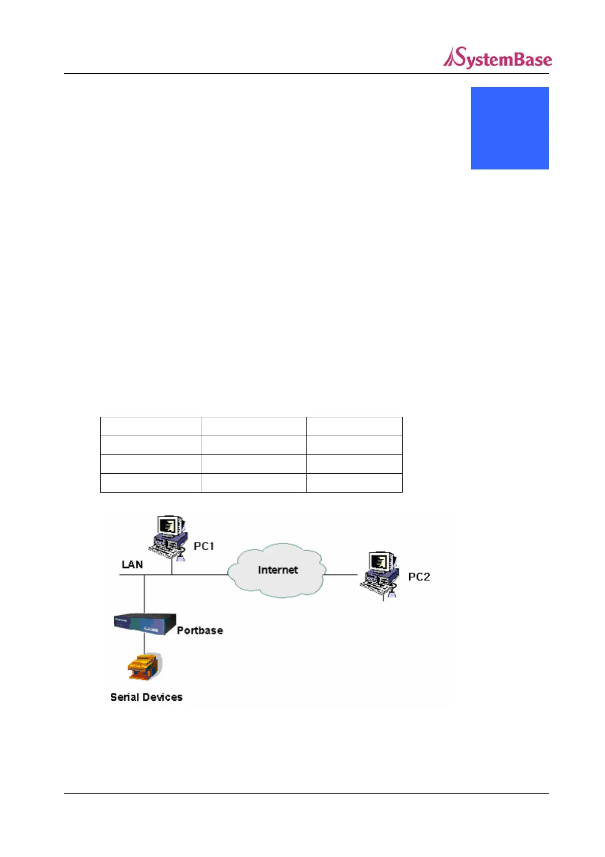 This example assumes that Portbase uses the default IP address, 192.168.1.71, and that PC1 and PC2