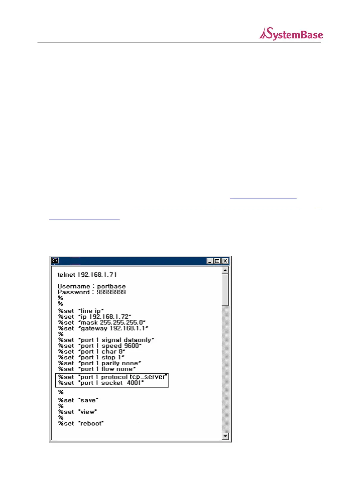 used to connect to Portbase. When the connection is established, communication with the serial