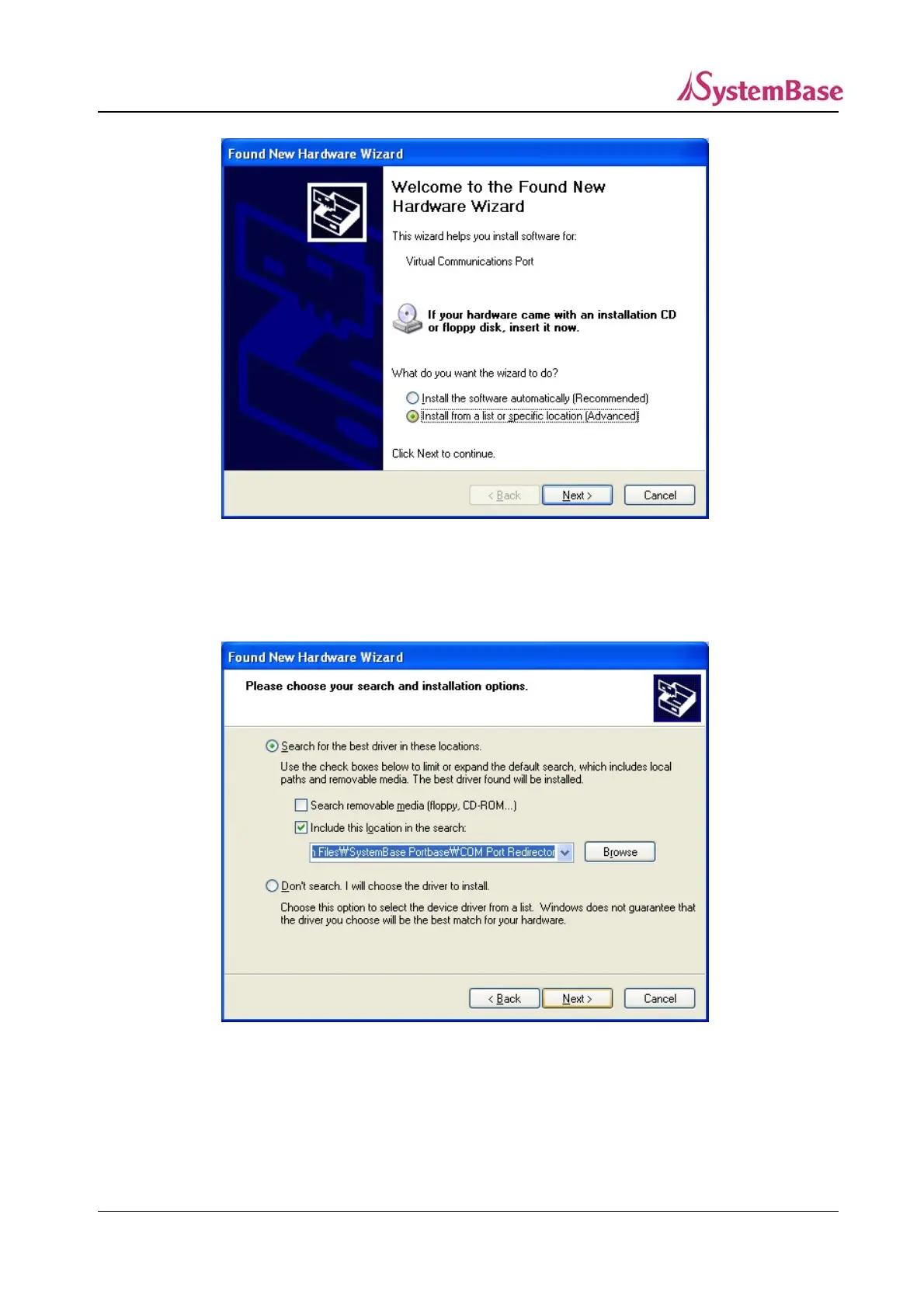 “C:₩Program Files₩SystemBase Portbase₩COM Port Redirector”. Click “Next”.