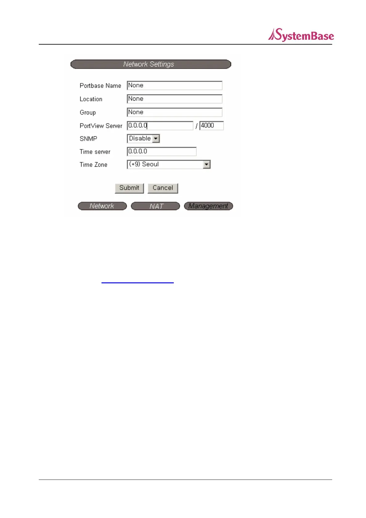4) Enter the IP address of the PC to execute Portview on, the name of Portbase, the Location