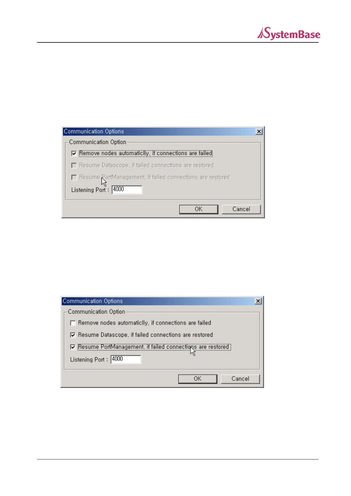 ① If you select ‘Remove nodes automatically, if connections are failed’, the Portbase information