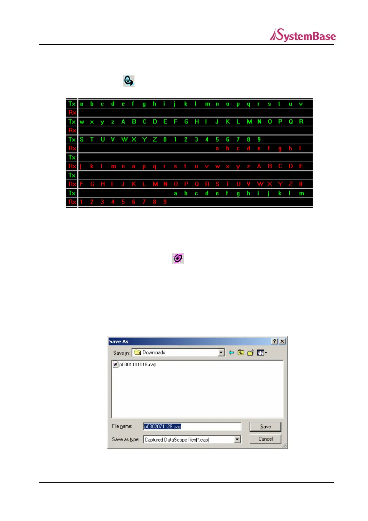Start button is pressed down while the message is saved on a file.) Click on “Capture Stop”.