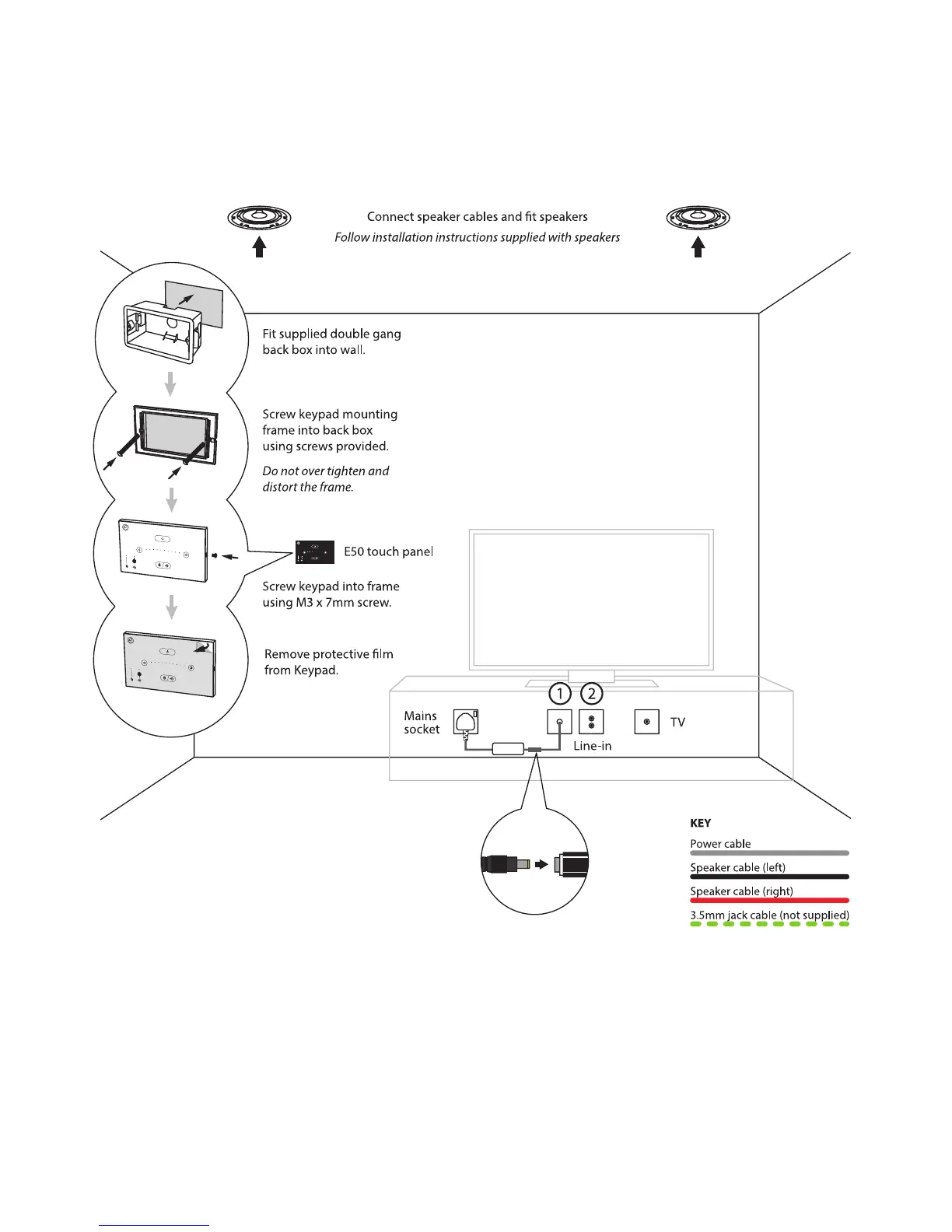 2. Optional TV sound / Aux input requires a 25 x 50mm twin phono Euro module e.g.