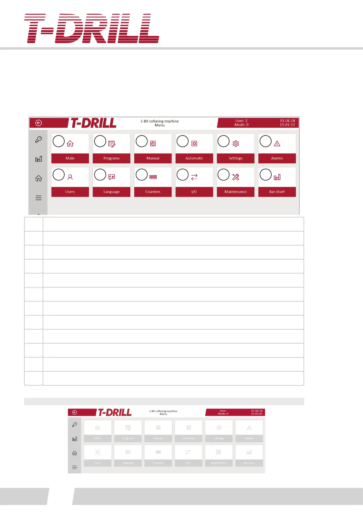 11. Maintenance screen (T-Drill service only)
