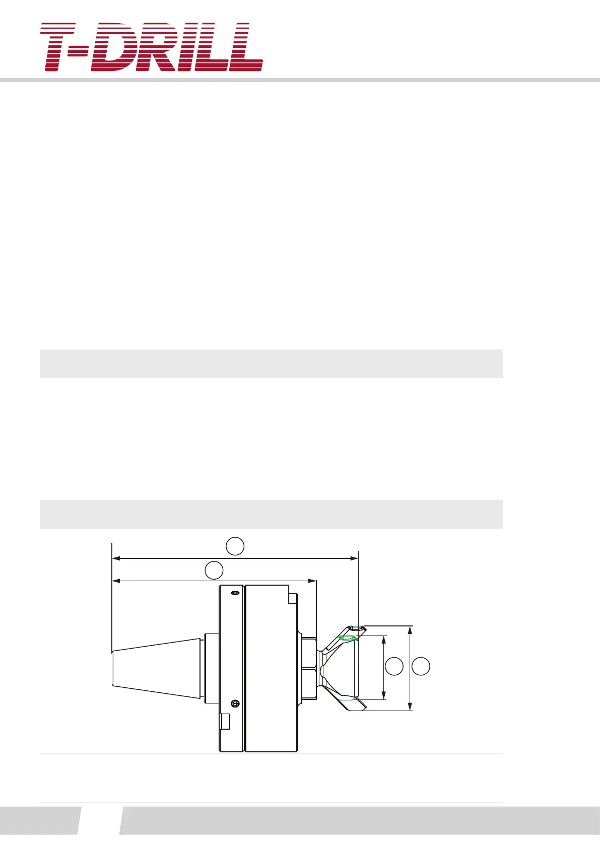 measuring) and to tool core end (1). Tool head width with pins fully extended (3) and pins