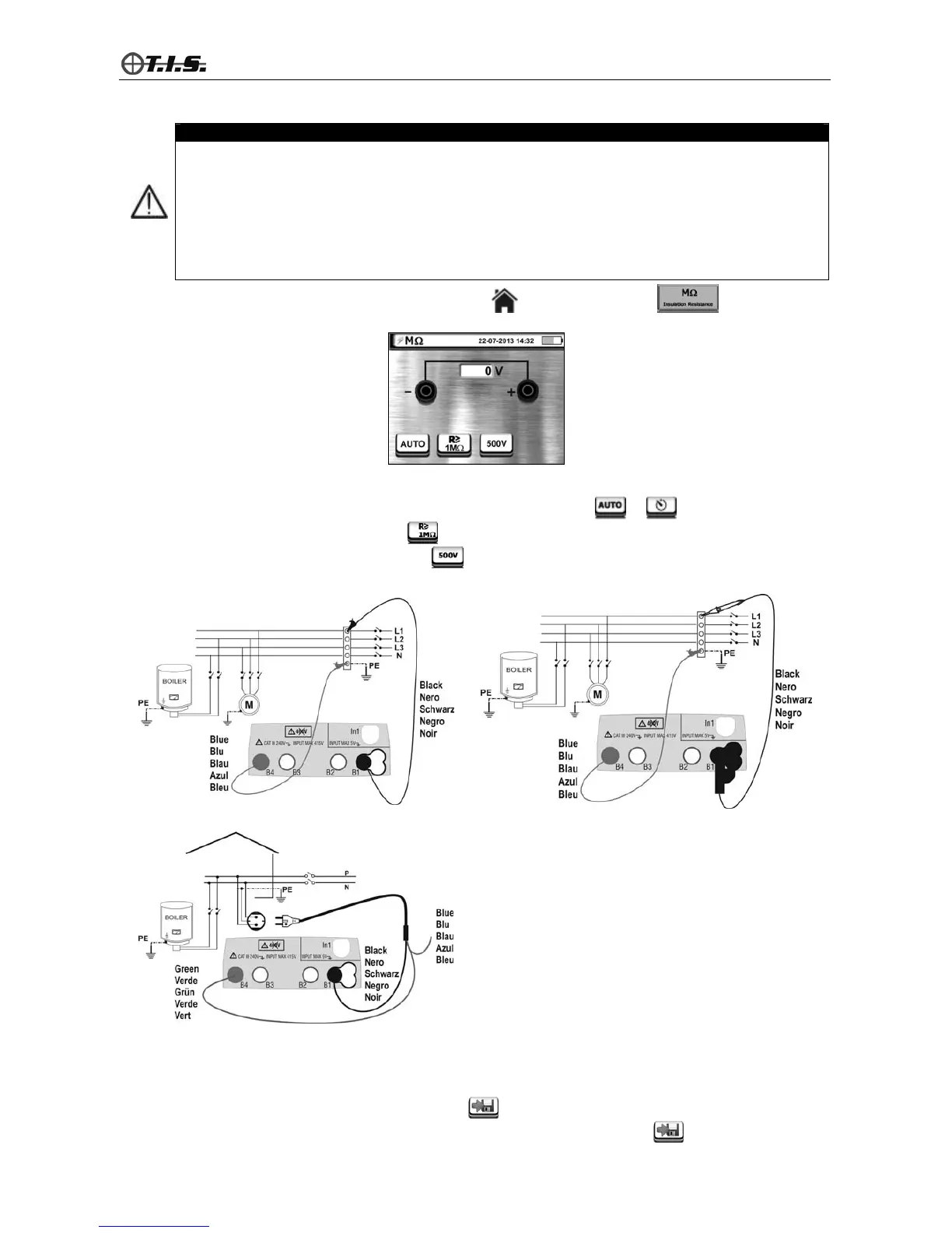 to earth and CAT III 415V between inputs. Category CAT III is suitable for measurements carried out on