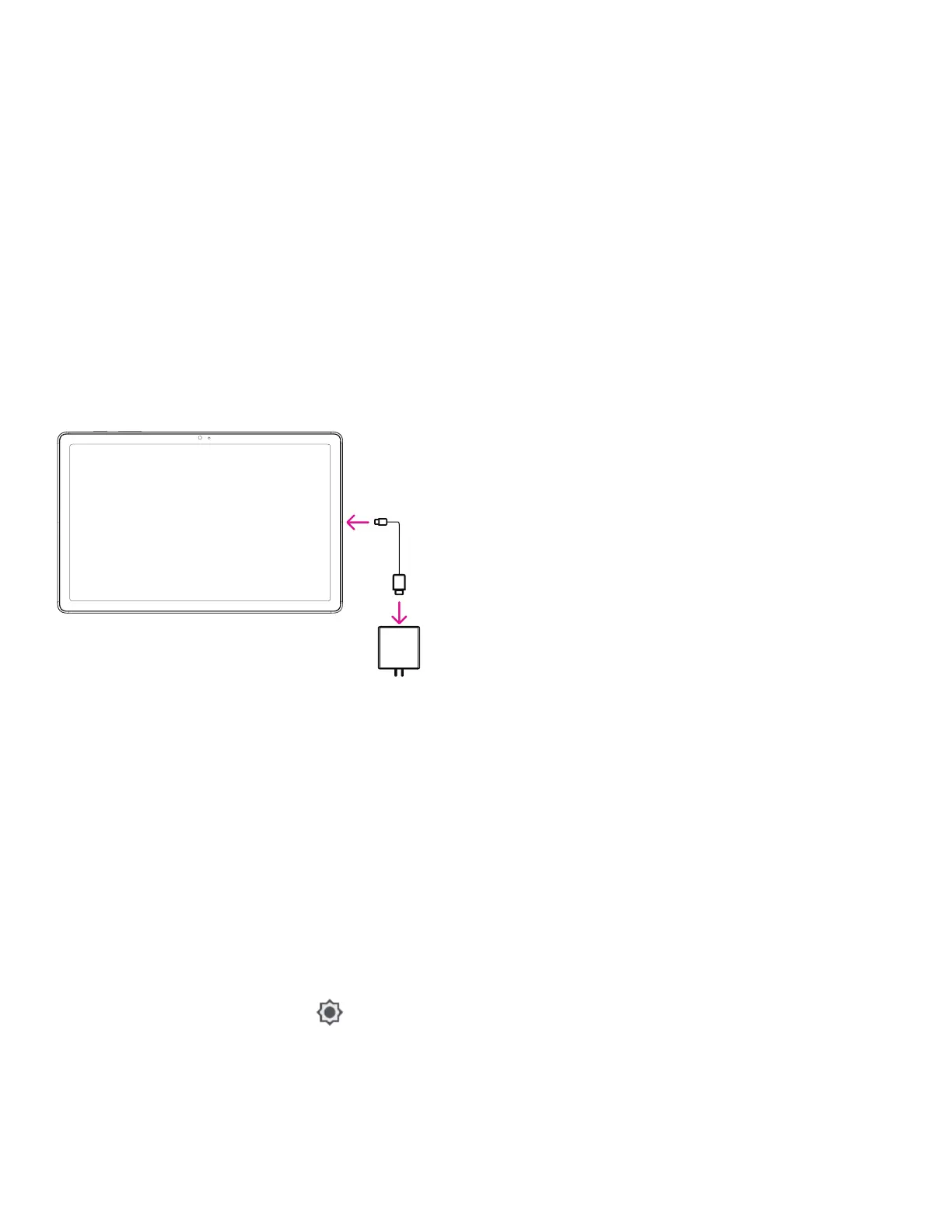 Insert the small end of the charging cable into the charge port and plug the charger into an electrical outlet.
