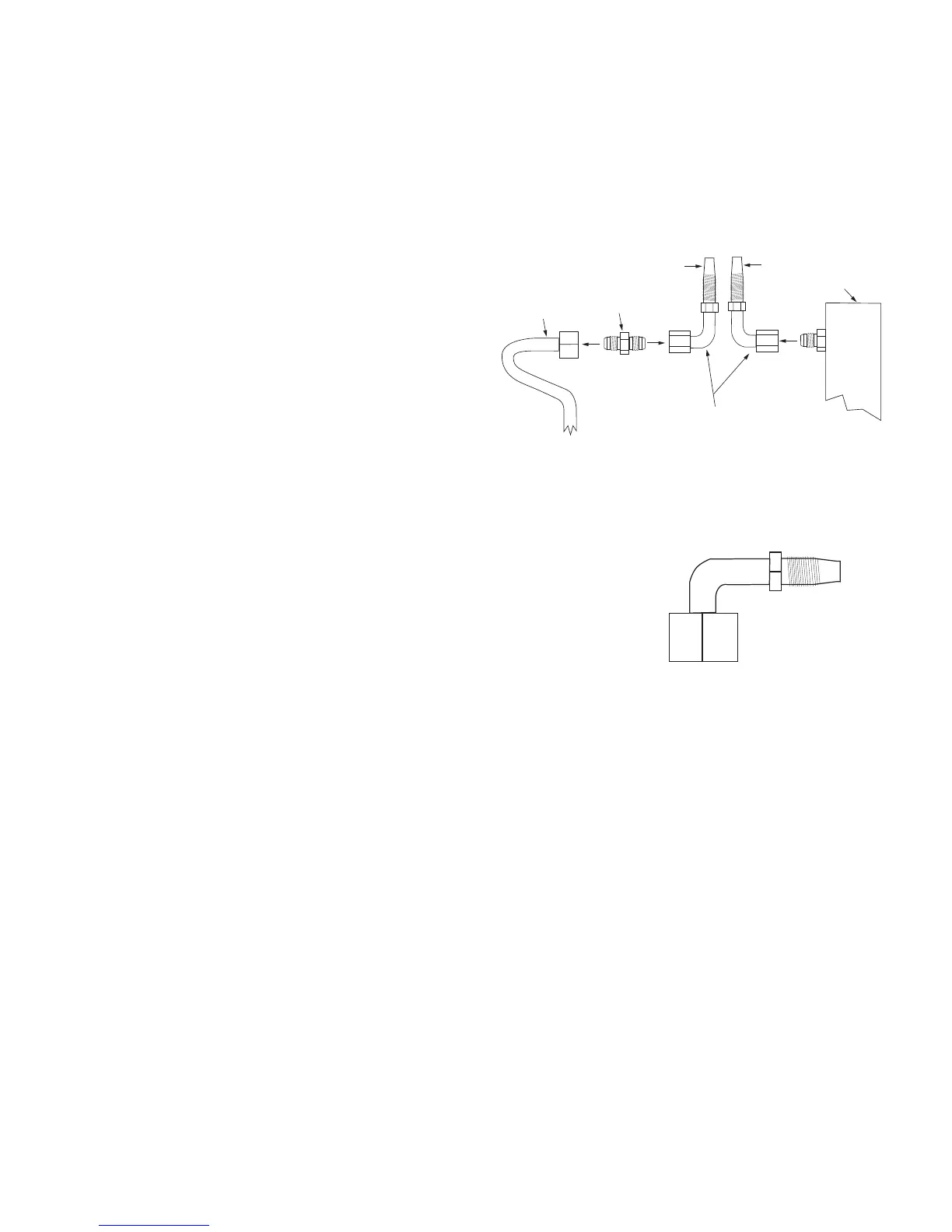 6. Install a second service hose adapter to the other end of the elbow fitting and secure in place with one of