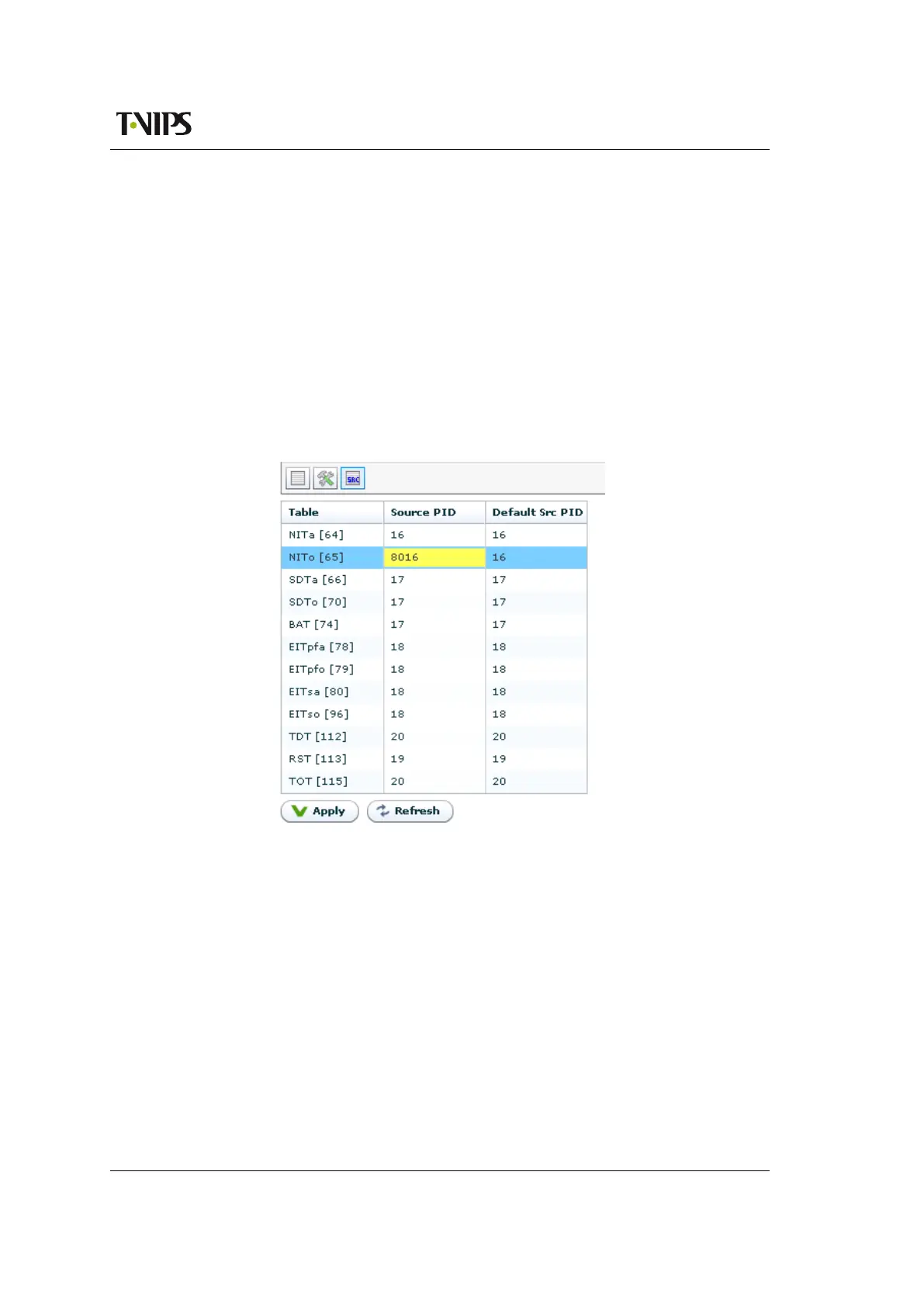 The input PID to use in the section filter for this table ID. Click the grid cell to edit it.