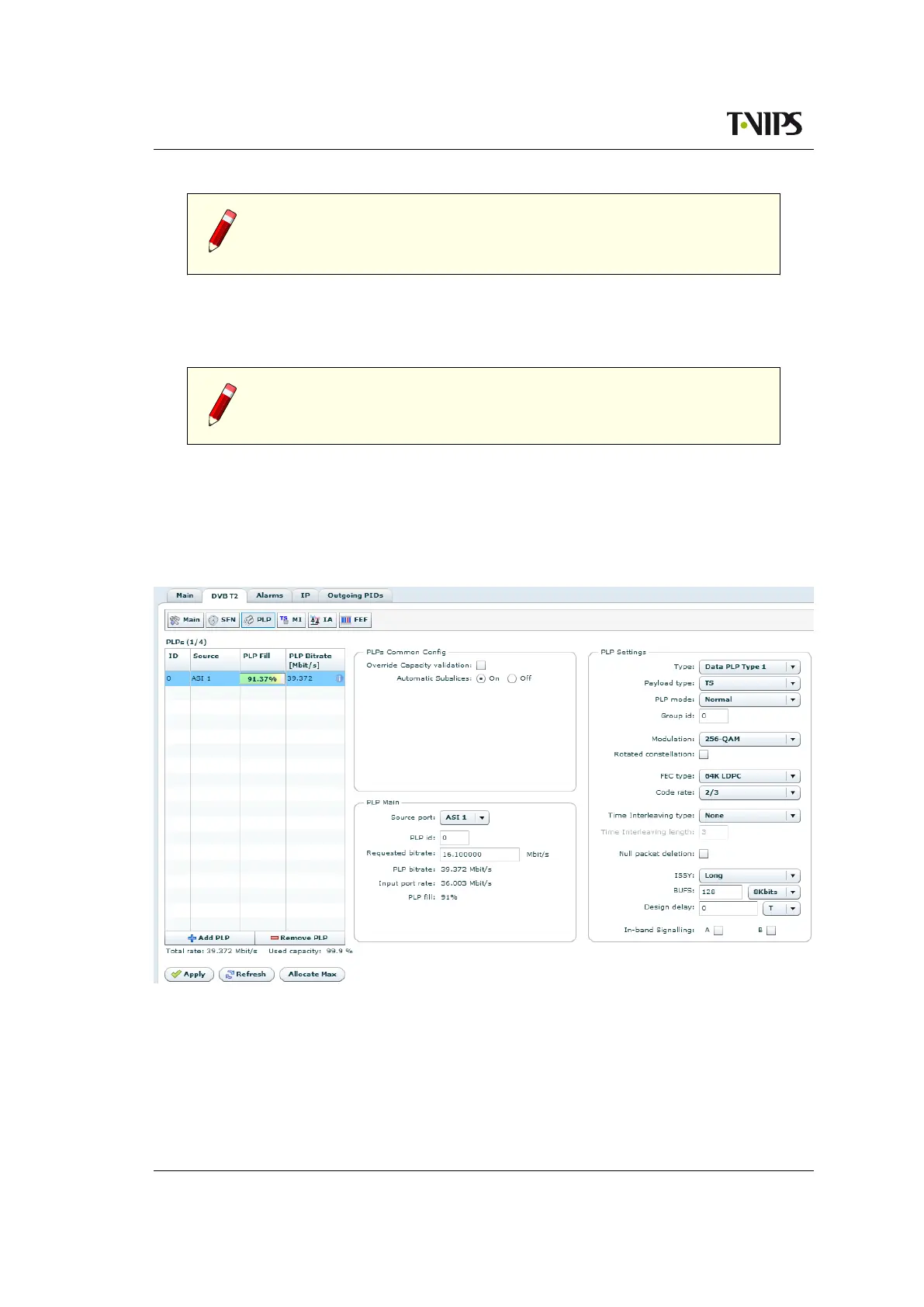 The PLP configuration page has all the PLP configuration parameters. The list on the left hand