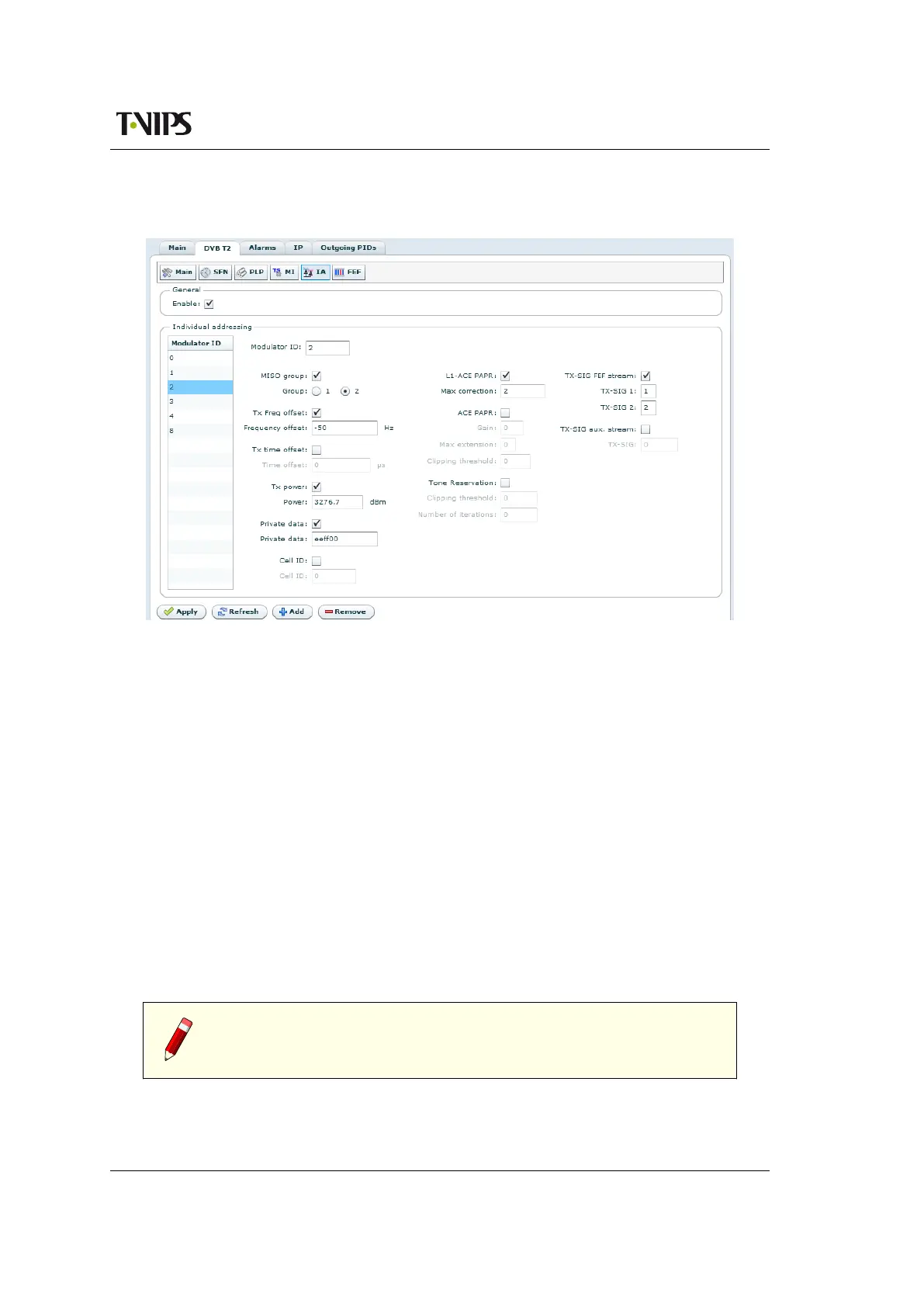 EN 102 773 for further description of the parameters. Each modulator must be configured with