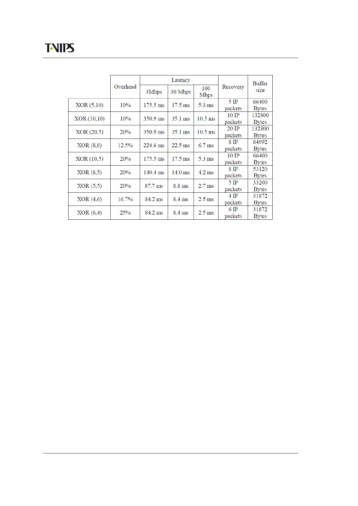 Also shown is the resulting overhead and the number of packets that can be corrected. In