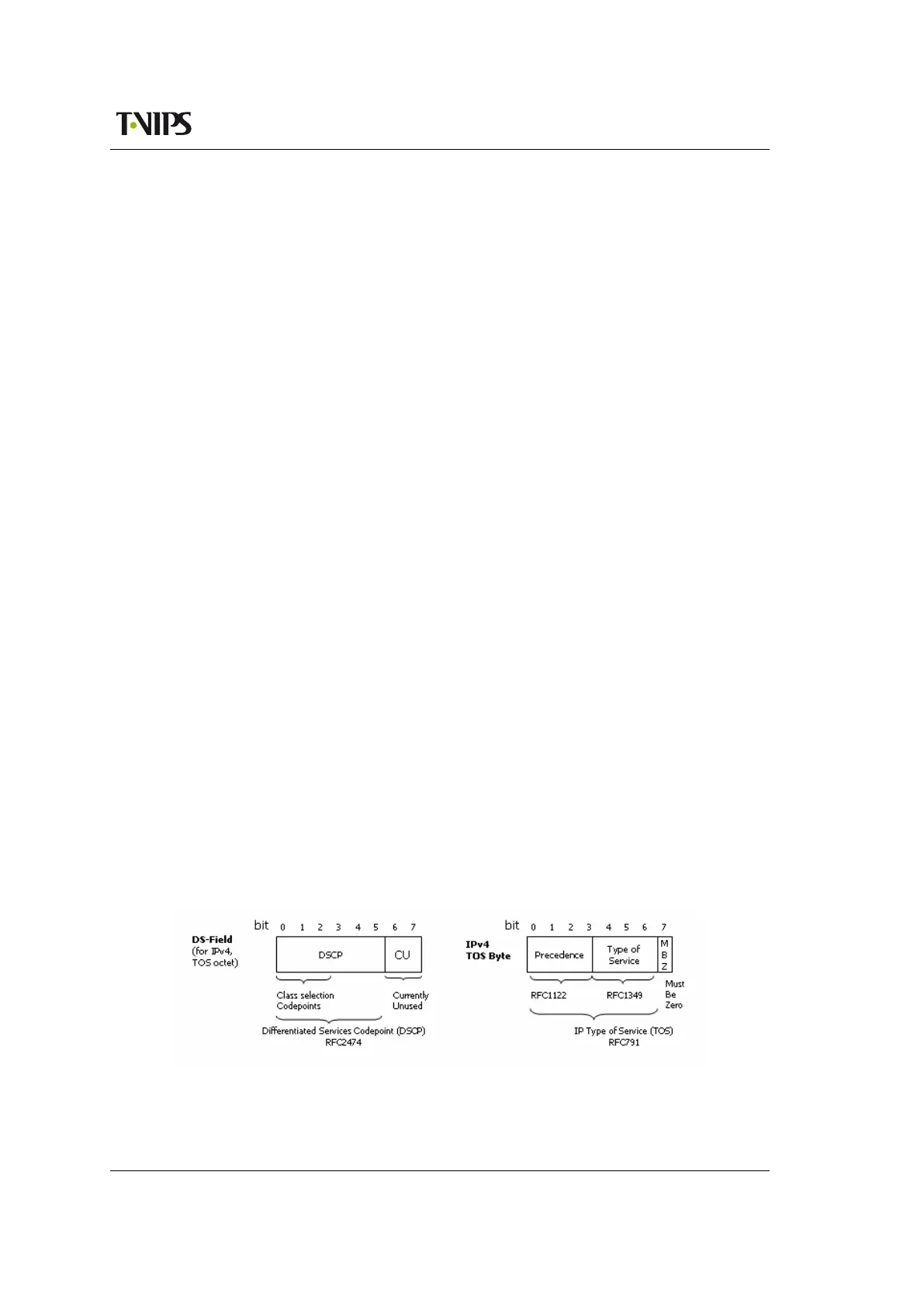 Figure D.1 Differentiated services (Diff-serve) and precedence bits (TOS)