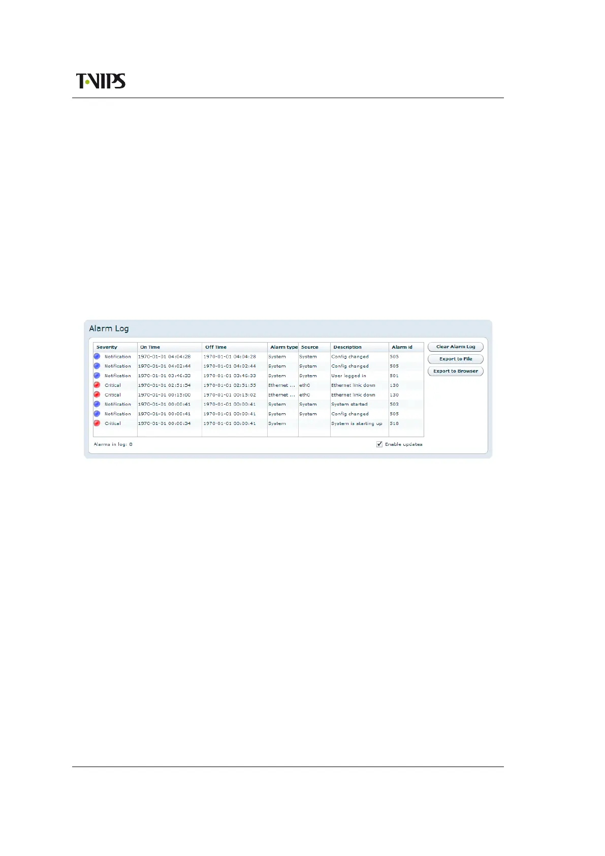 Figure 8.6 Alarm log