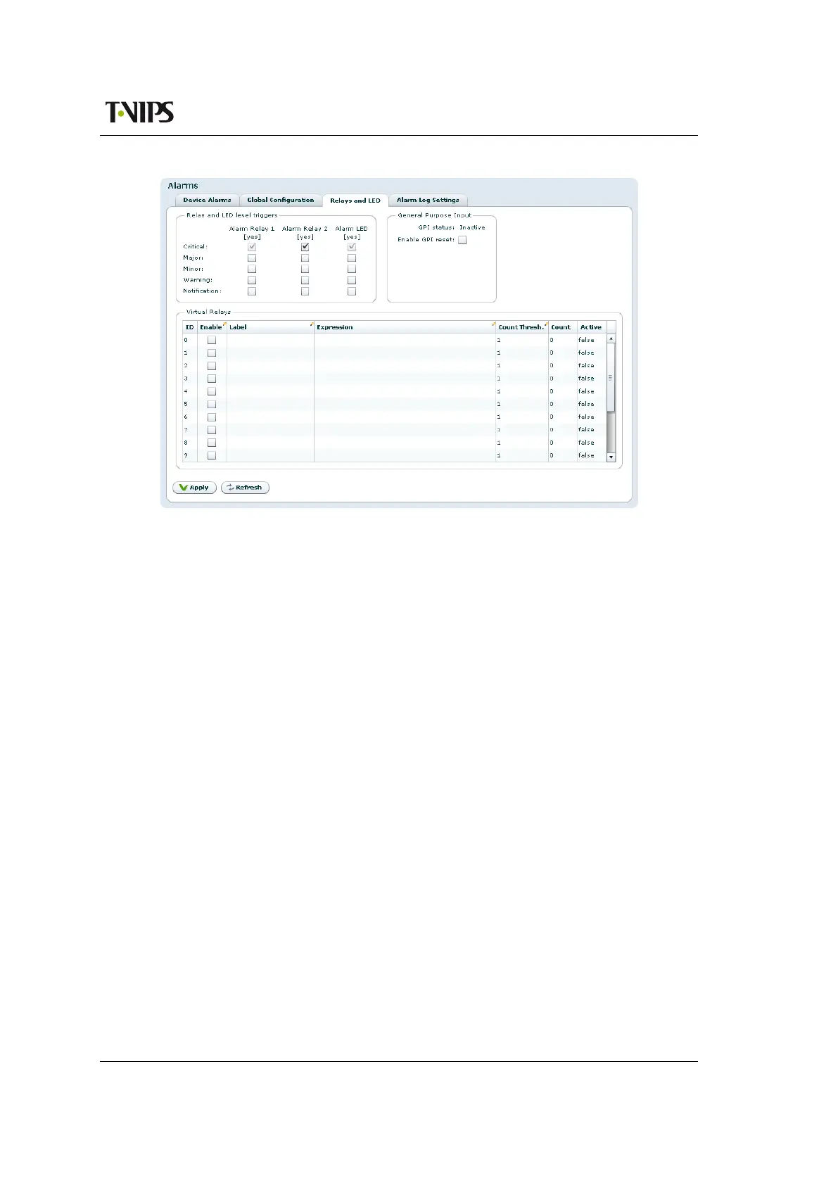 up. In another case you may want to enable a relay if a specific alarm turns up on a given port.