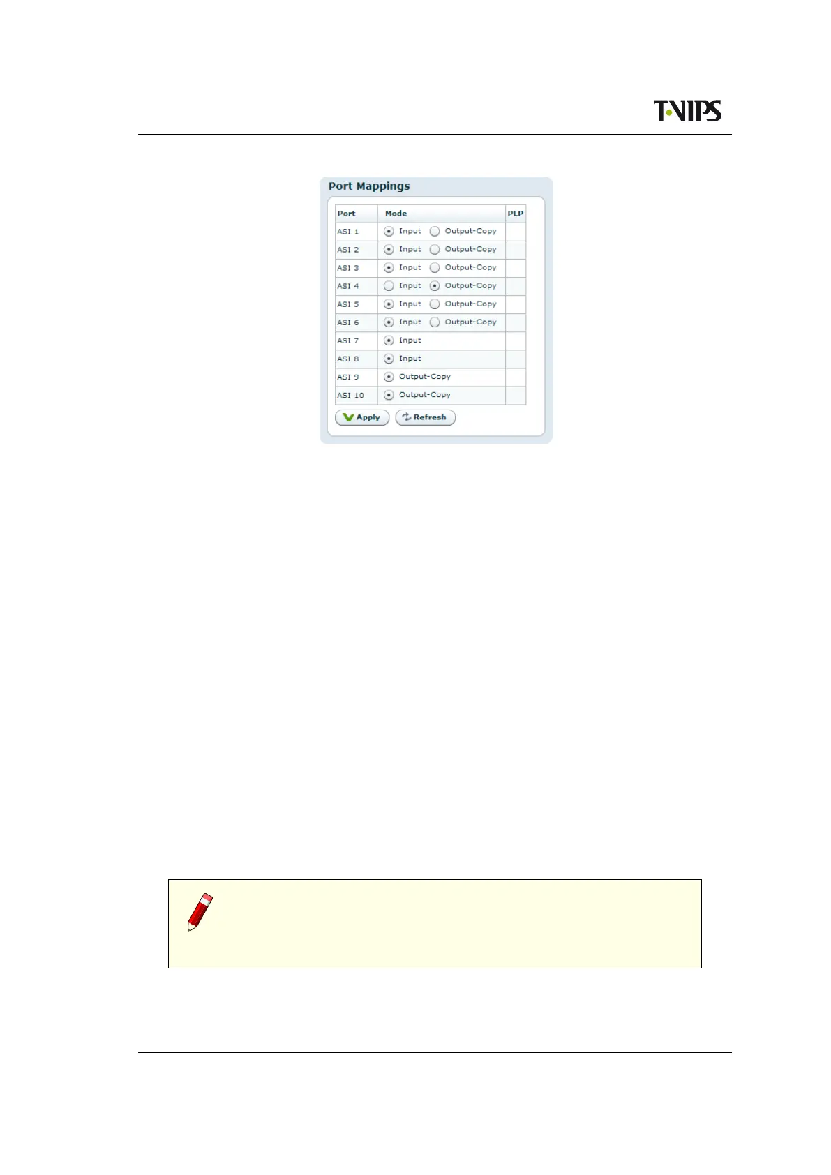 in the PLP column. ASI inputs used as source for a PLP may not be port mapped to ASI