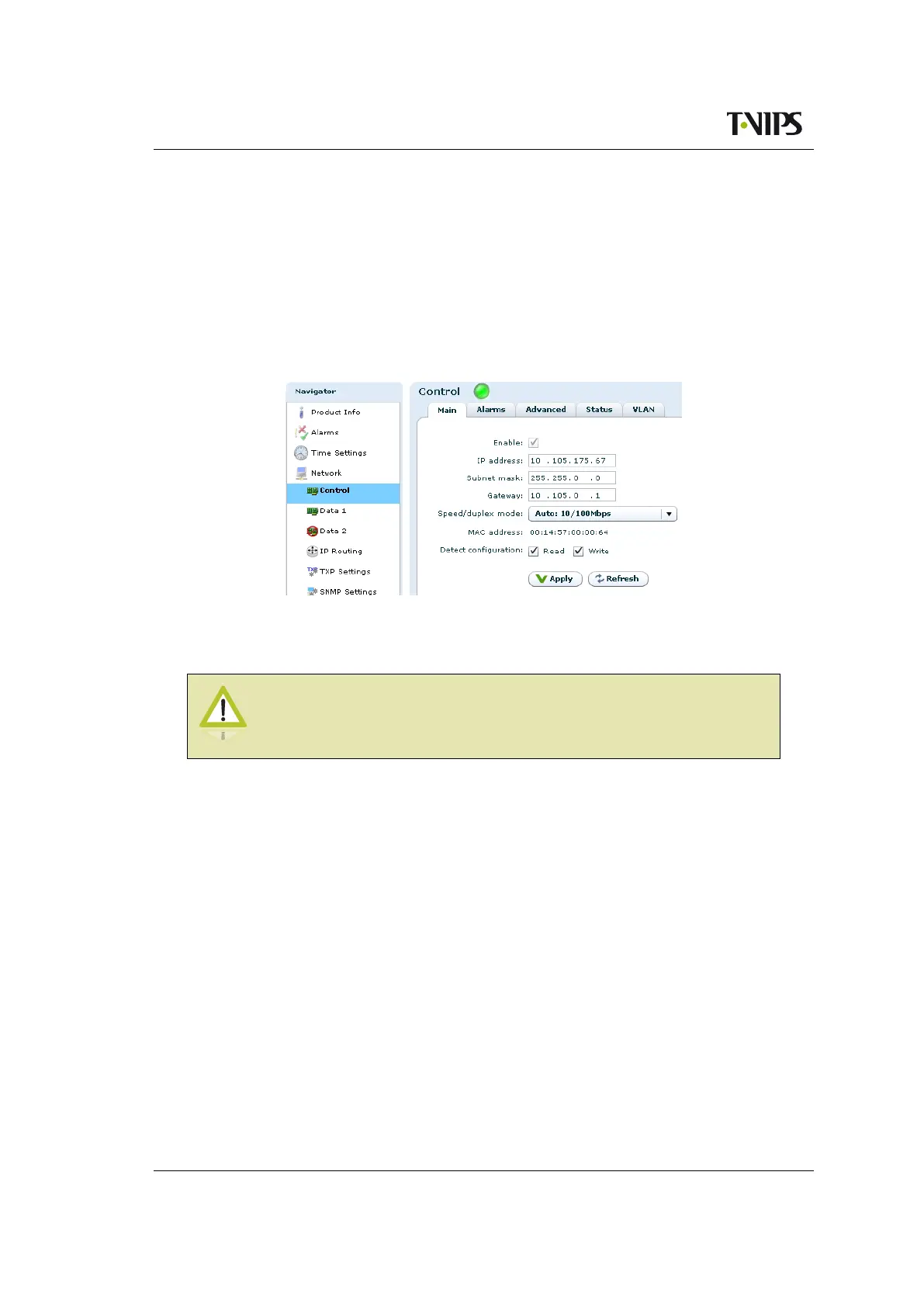 Figure 8.16 Main IP settings