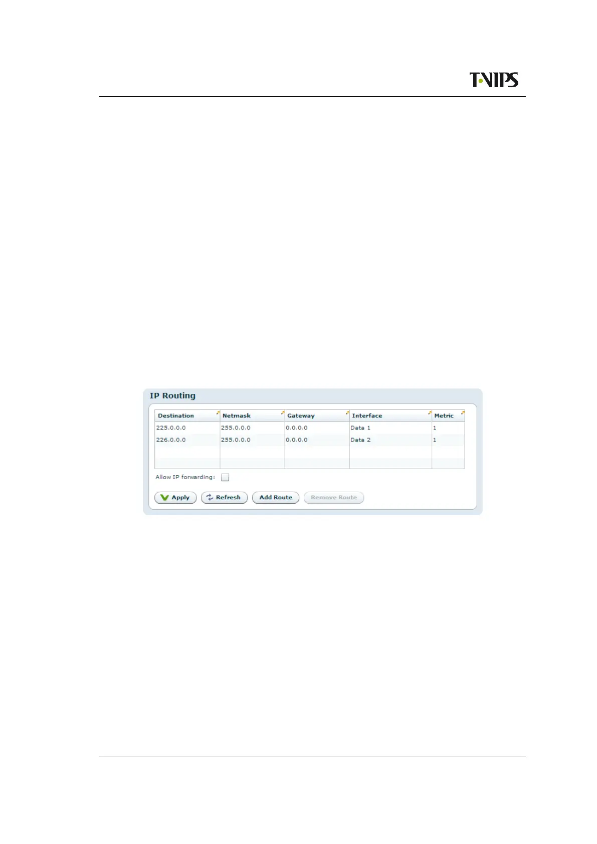 The IP Routing table lets the user configure IP routing rules for the unit. These rules tell the